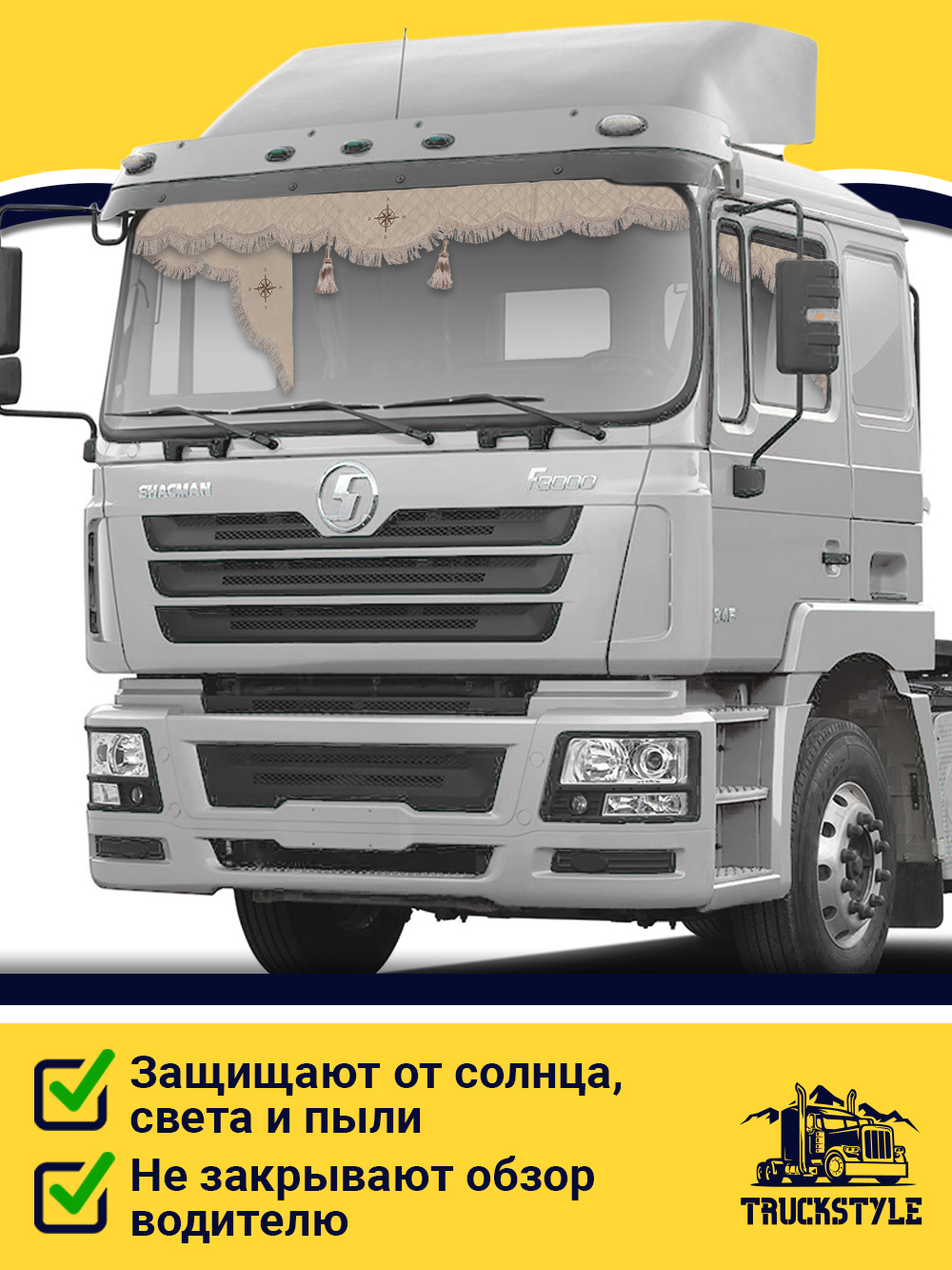 • Данный комплект аксессуаров для грузовика, с одной стороны, блокирует солнечные лучи и снижает нагрев салона, а с другой, не затрудняет обзор водителю, следовательно, безопасен в эксплуатации.