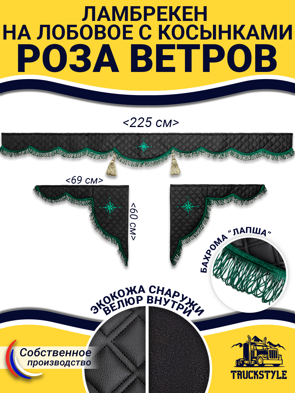 Ламбрекен для лобового стекла + Косынки на боковые стекла для грузовых а/м с вышивкой «Роза Ветров».