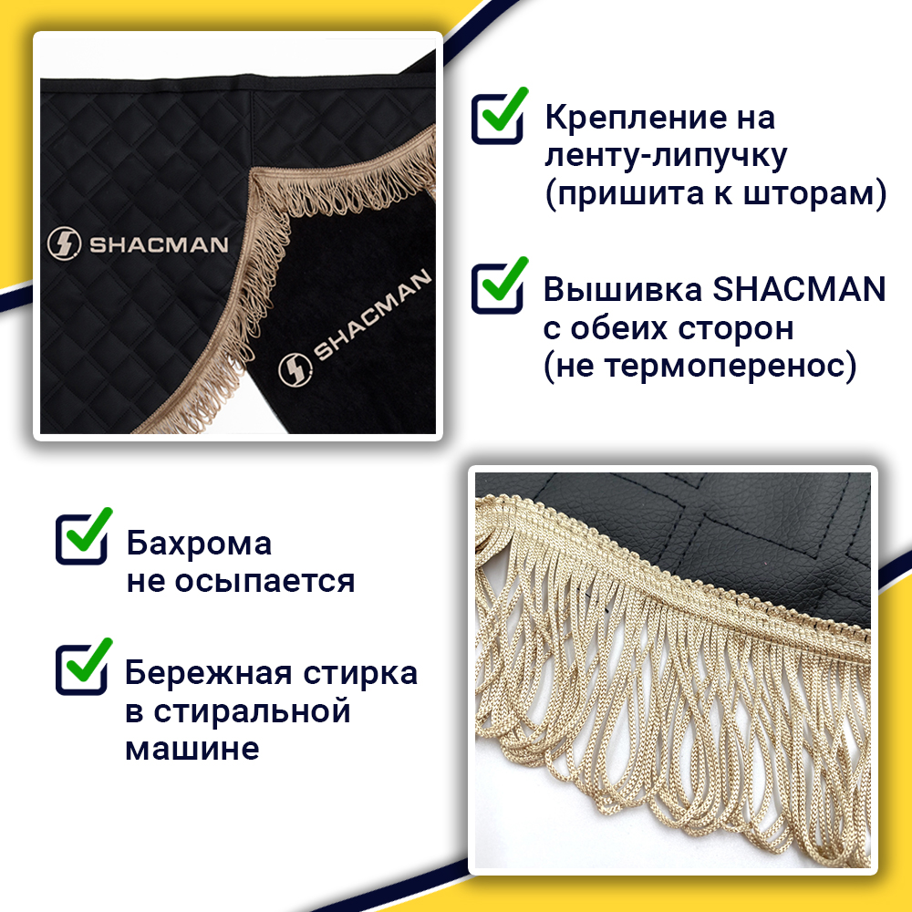 • Ширина лобового ламбрекена 225 см – подходит для седельных тягачей, одиночек и самосвалов Shacman.