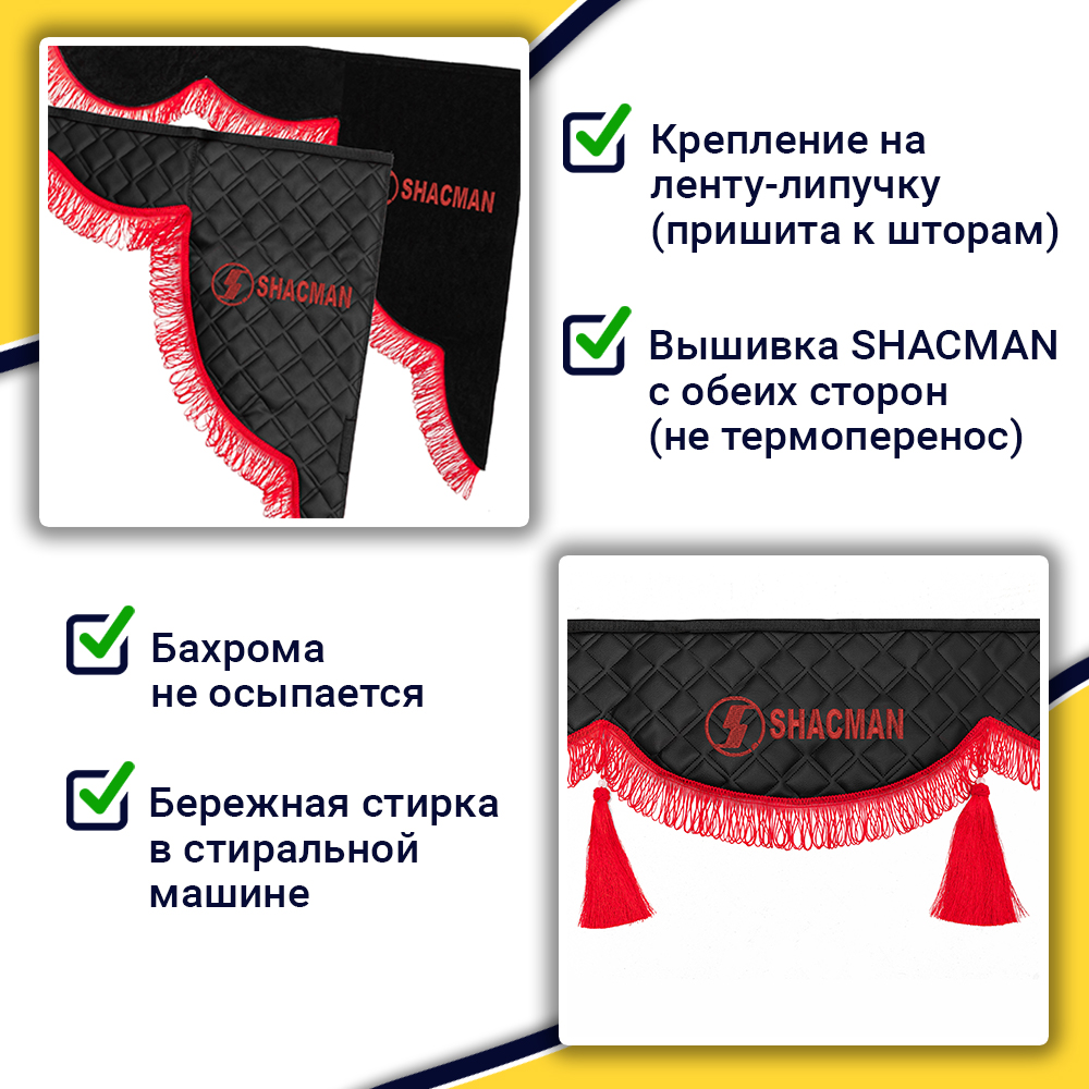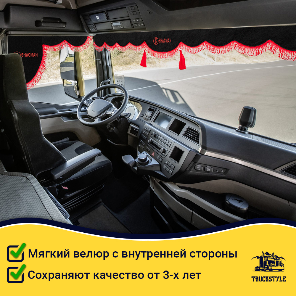 • Ширина лобового ламбрекена 225 см – подходит для седельных тягачей, одиночек и самосвалов Shacman.