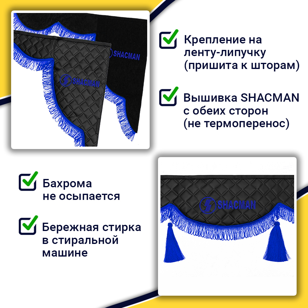 • Ширина лобового ламбрекена 225 см – подходит для седельных тягачей, одиночек и самосвалов Shacman.