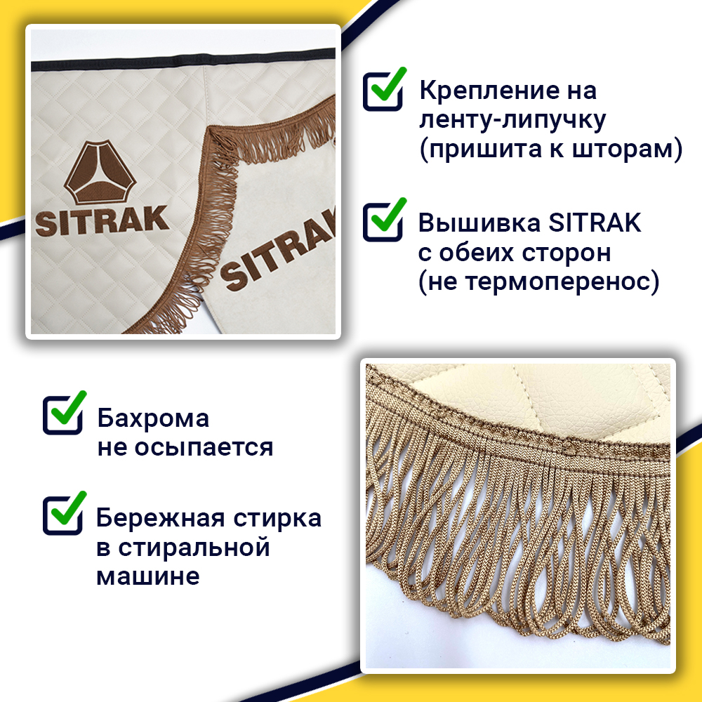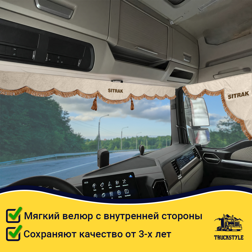 • Ширина лобового ламбрекена 225 см – подходит для седельных тягачей, одиночек и самосвалов Sitrak.