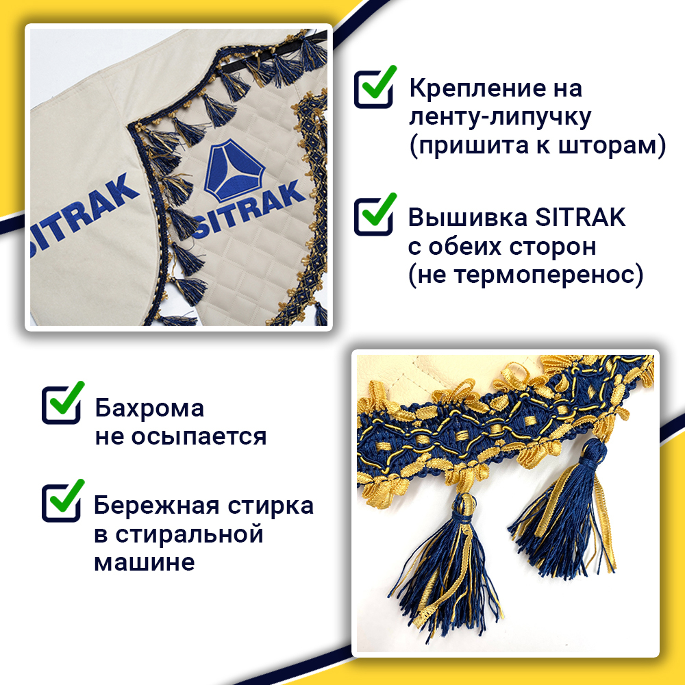 • Ширина лобового ламбрекена 225 см – подходит для седельных тягачей, одиночек и самосвалов Sitrak.