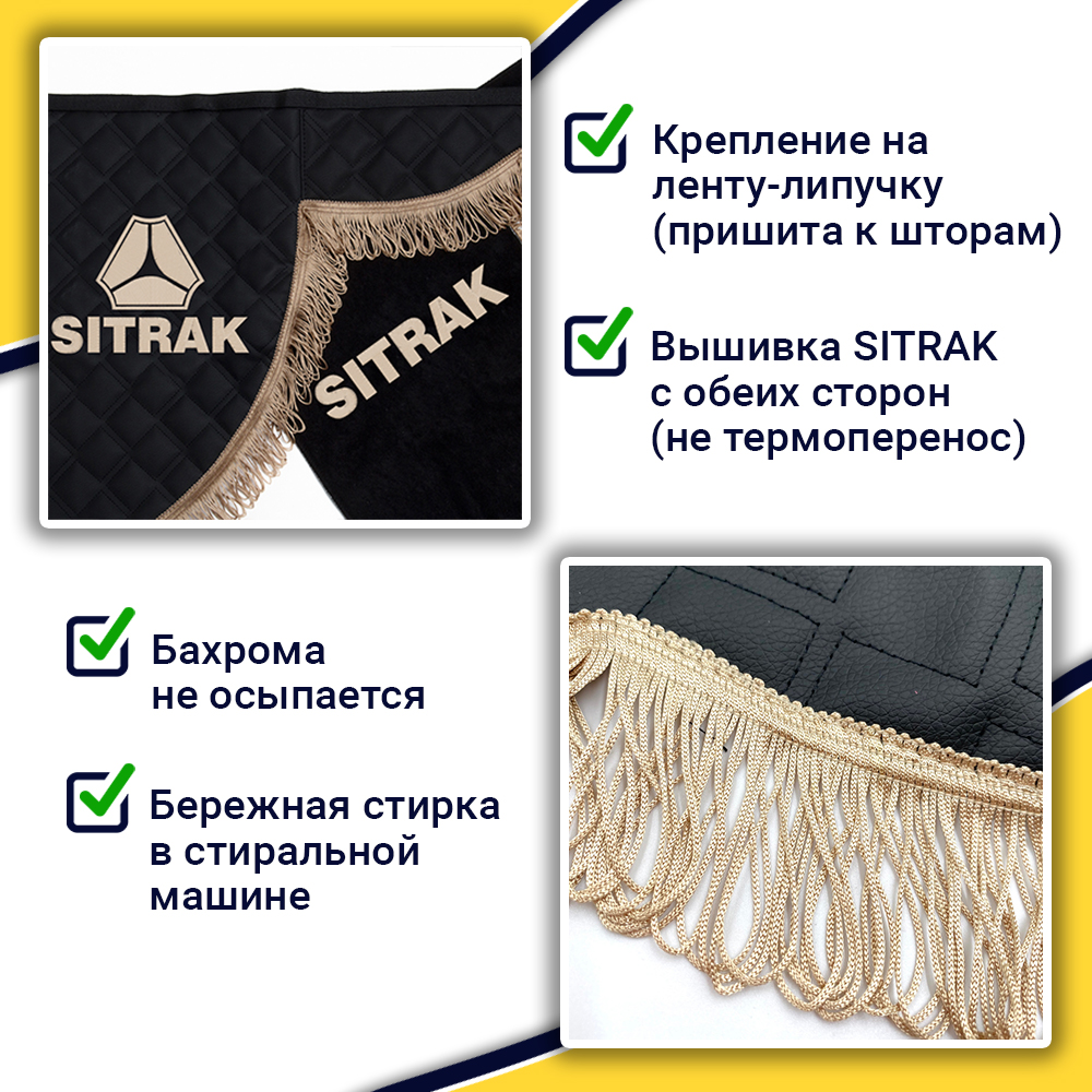 • Ширина лобового ламбрекена 225 см – подходит для седельных тягачей, одиночек и самосвалов Sitrak.