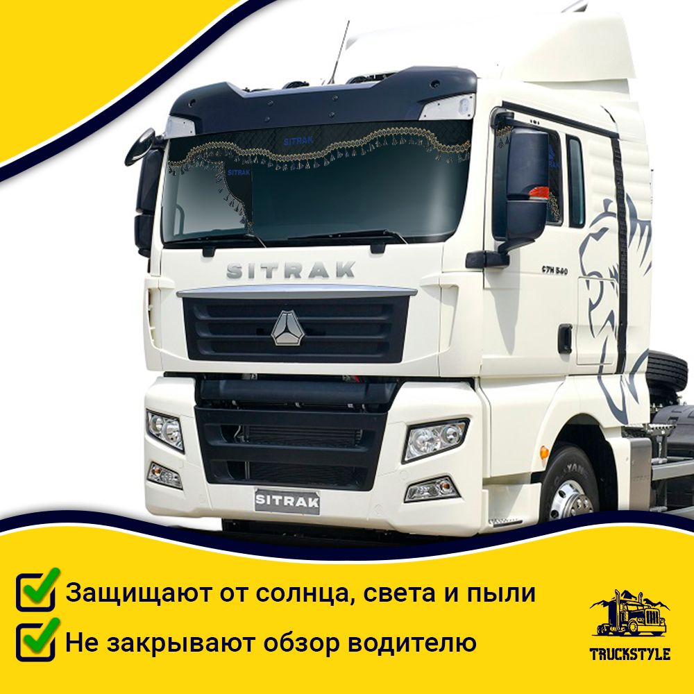 • Ширина лобового ламбрекена 225 см – подходит для седельных тягачей, одиночек и самосвалов Sitrak.