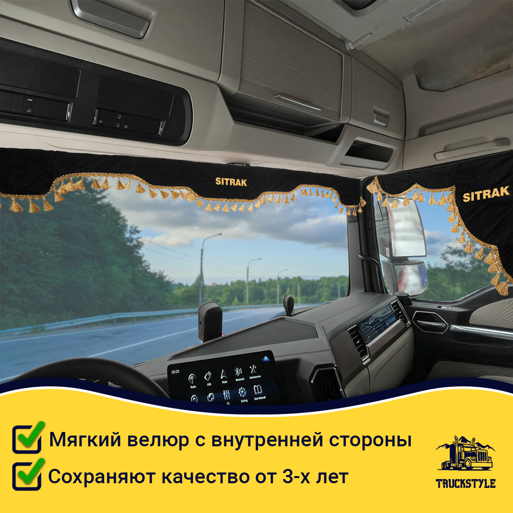 • Ширина лобового ламбрекена 225 см – подходит для седельных тягачей, одиночек и самосвалов Sitrak.