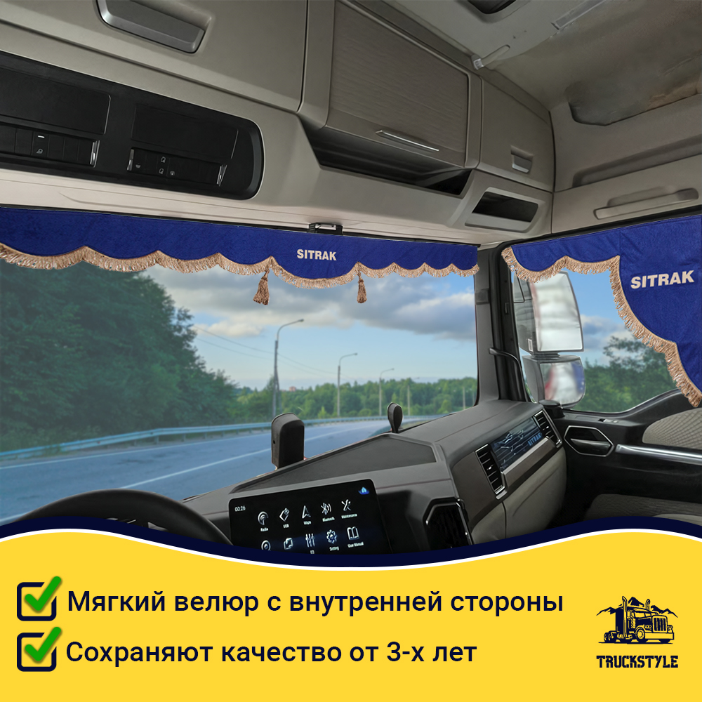 • Ширина лобового ламбрекена 225 см – подходит для седельных тягачей, одиночек и самосвалов Sitrak.
