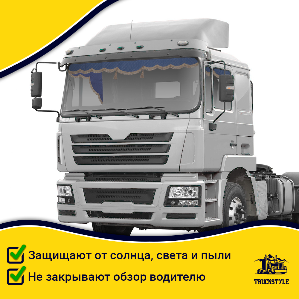 • Данный комплект аксессуаров для грузовика, с одной стороны, блокирует солнечные лучи и снижает нагрев салона, а с другой, не затрудняет обзор водителю, следовательно, безопасен в эксплуатации.