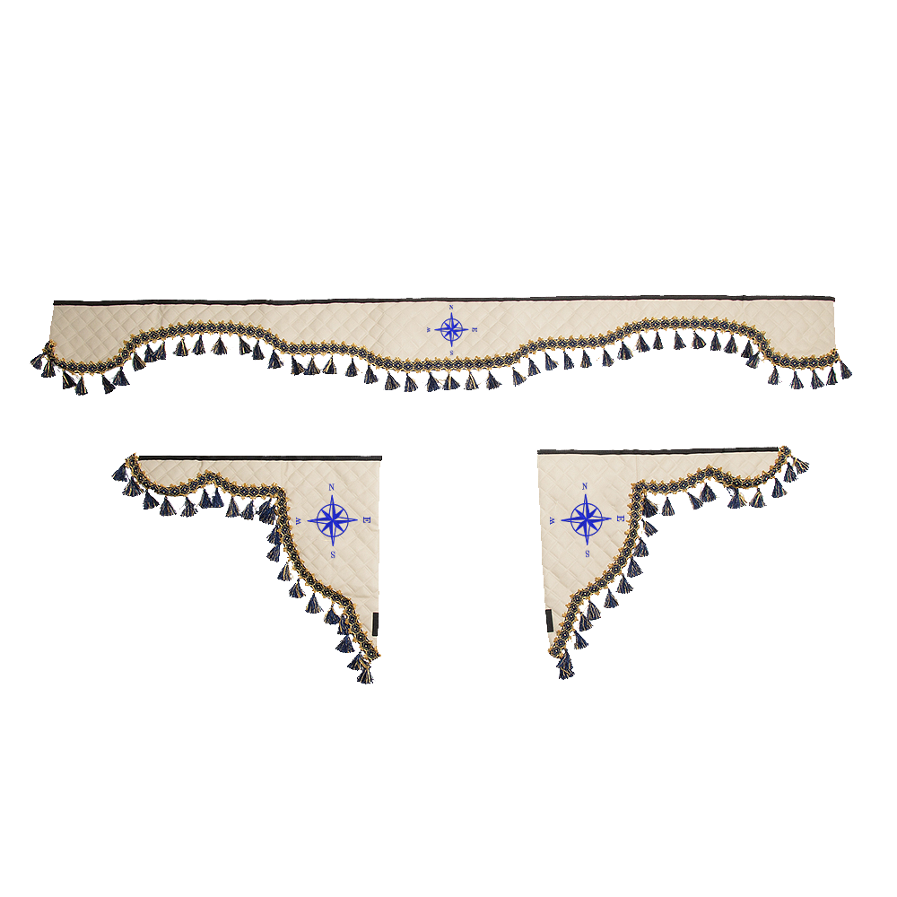 Ламбрекен для лобового стекла + Косынки на боковые стекла для грузовых а/м с вышивкой «Роза Ветров».