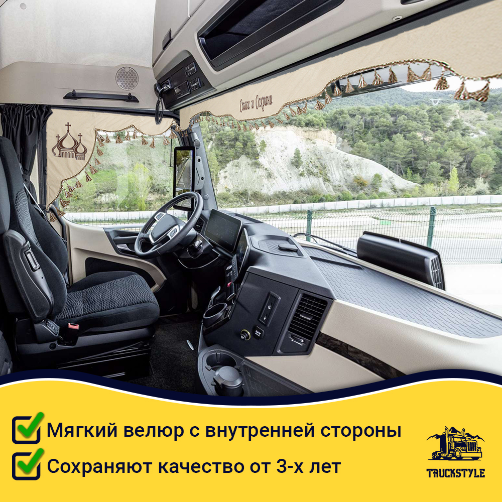 Ламбрекен для лобового стекла + Косынки на боковые стекла для грузовых а/м с вышивкой «Спаси и Сохрани».