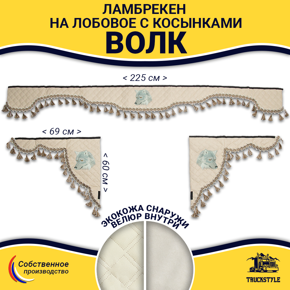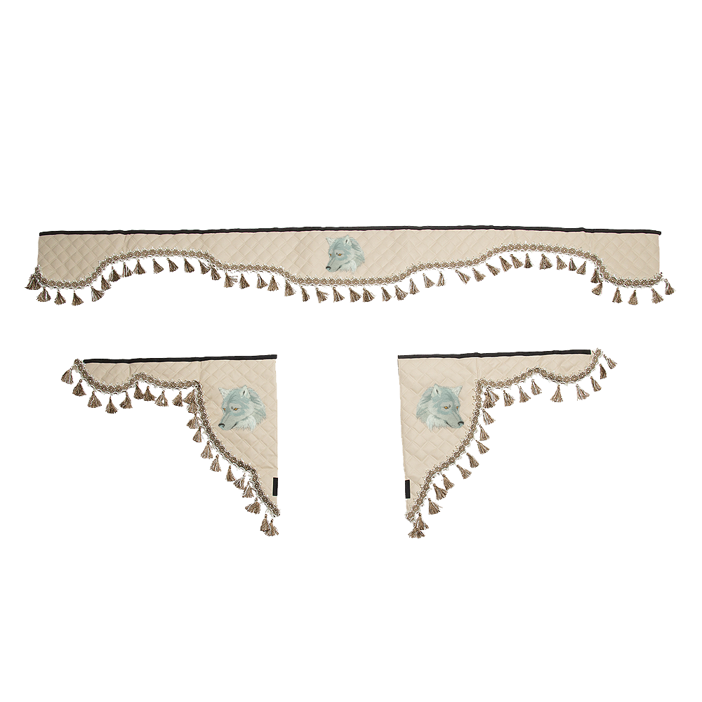 Ламбрекен для лобового стекла + Косынки на боковые стекла для грузовых а/м с вышивкой «ВОЛК».