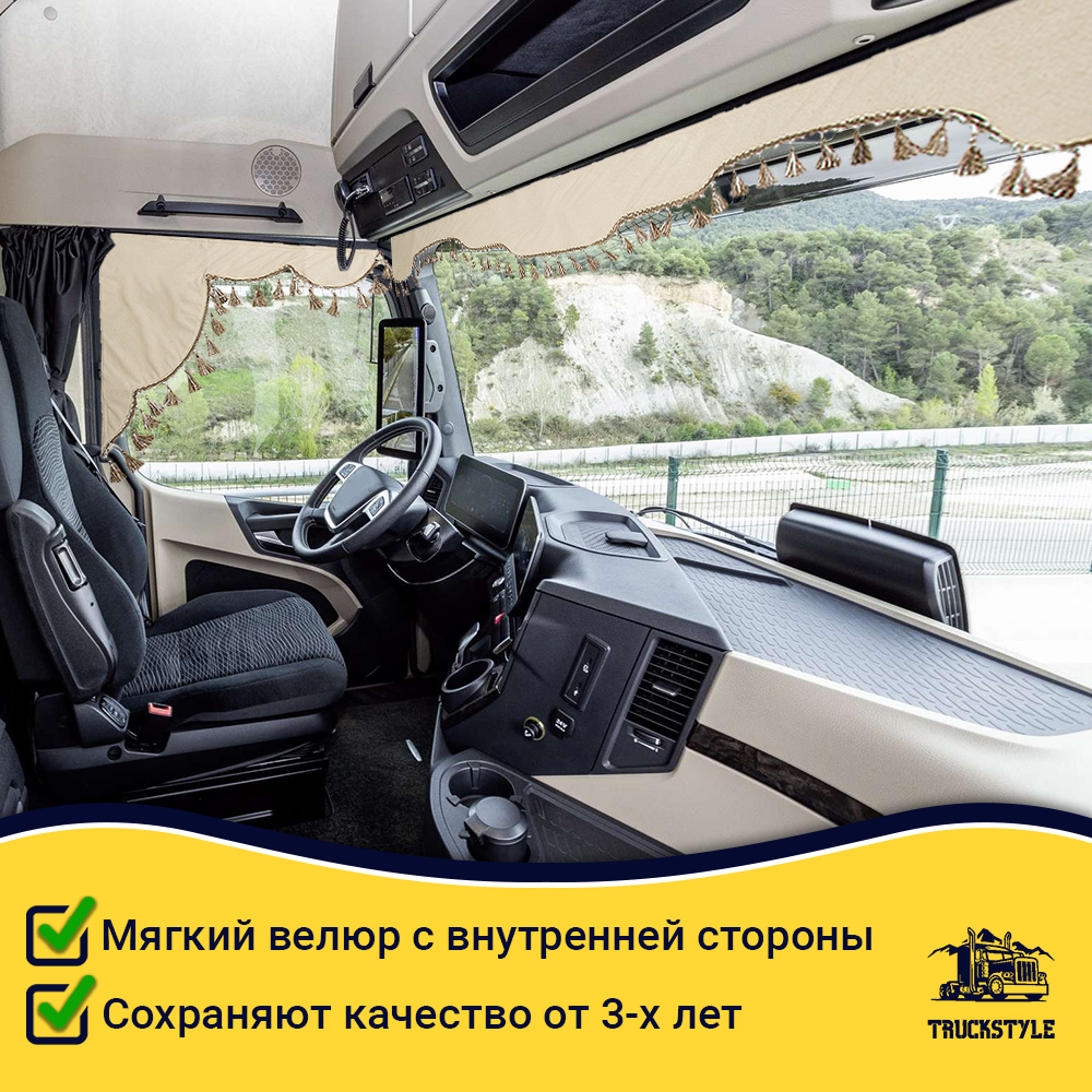 • Ширина лобового ламбрекена 225 см – подходит для седельных тягачей, одиночек и самосвалов.