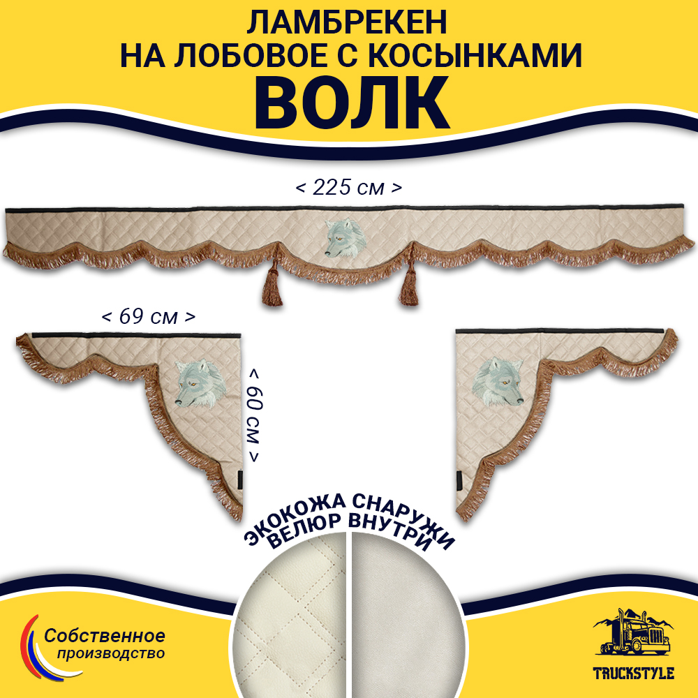 Ламбрекен для лобового стекла + Косынки на боковые стекла для грузовых а/м с вышивкой «ВОЛК».