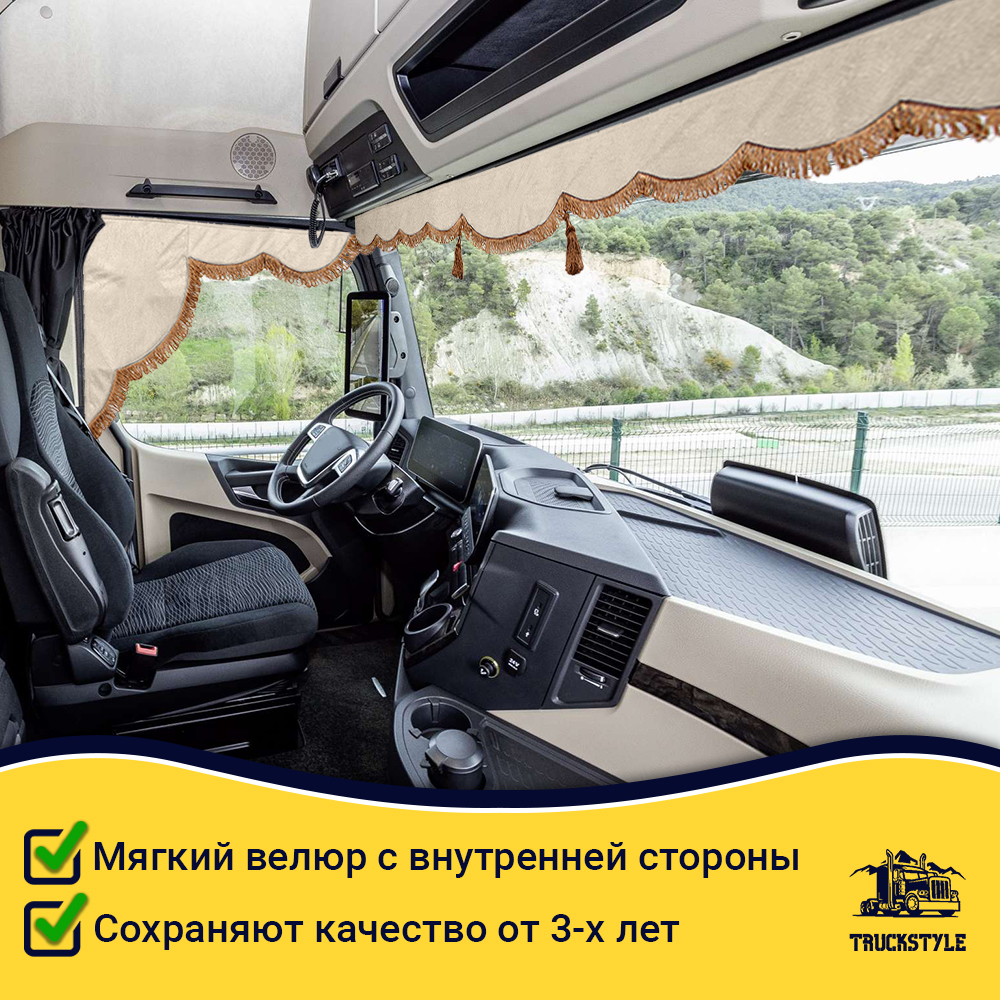 • Ширина лобового ламбрекена 225 см – подходит для седельных тягачей, одиночек и самосвалов.