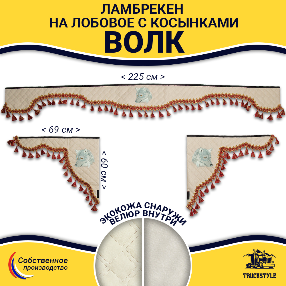 Ламбрекен для лобового стекла + Косынки на боковые стекла для грузовых а/м с вышивкой «ВОЛК».