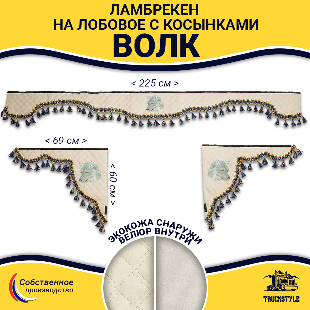 Ламбрекен для лобового стекла + Косынки на боковые стекла для грузовых а/м с вышивкой «ВОЛК».