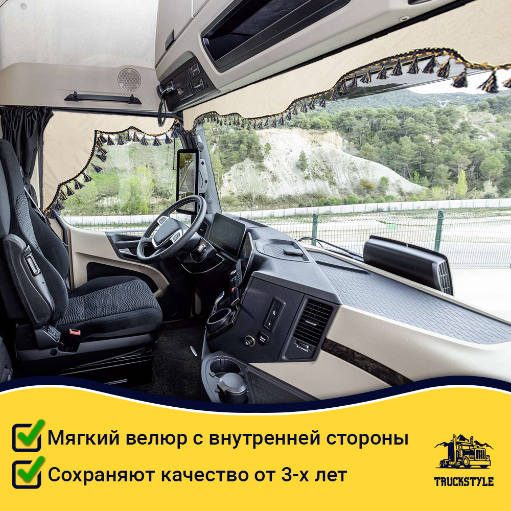 • Ширина лобового ламбрекена 225 см – подходит для седельных тягачей, одиночек и самосвалов.