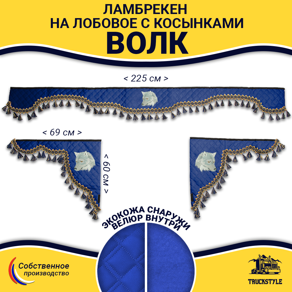 Ламбрекен для лобового стекла + Косынки на боковые стекла для грузовых а/м с вышивкой «ВОЛК».