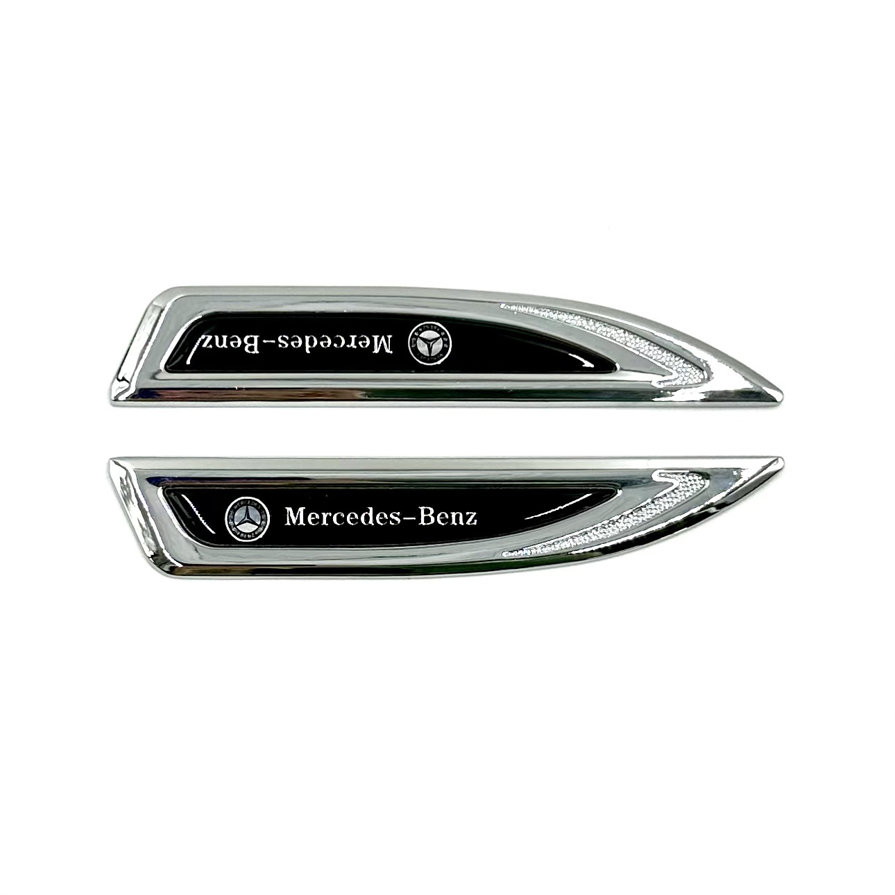 Накладки/наклейки Mercedes объемные металлические ("плавник" Мерс 14,5х2,5см). 2 шт в комплекте. Серебристый цвет