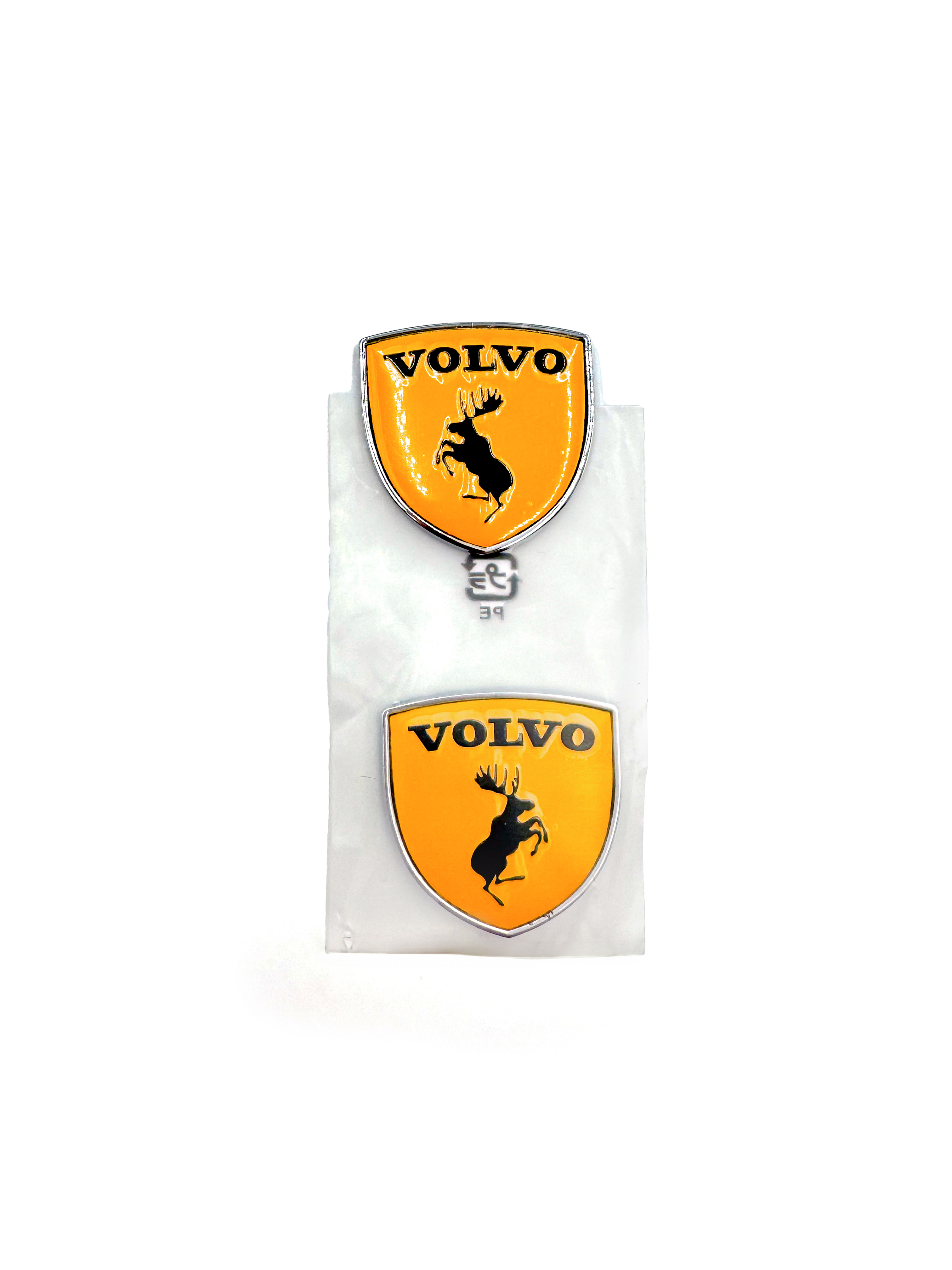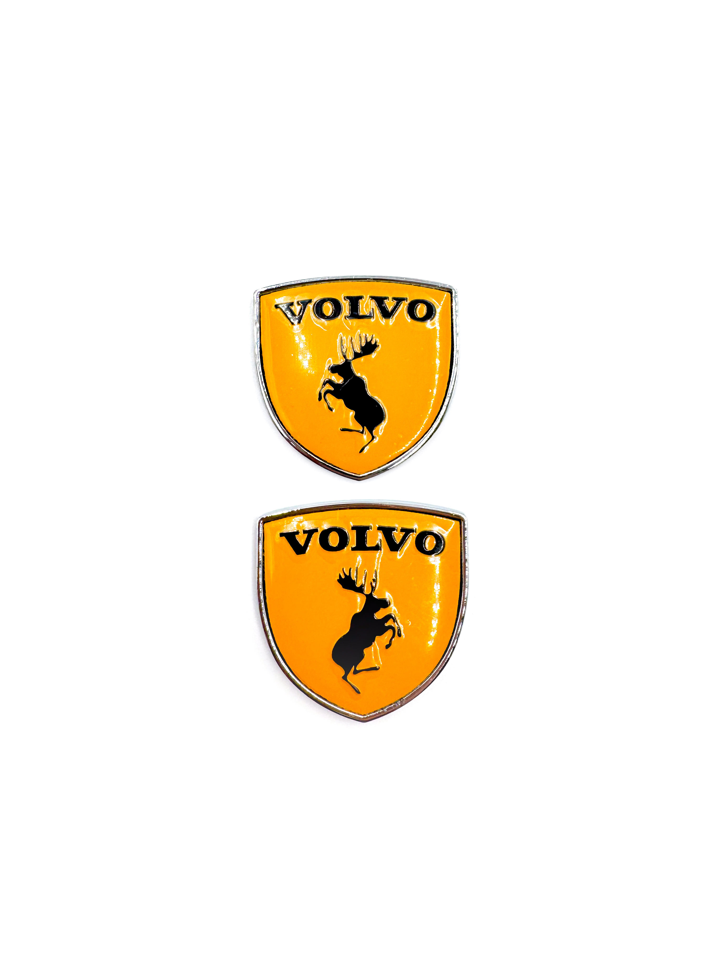 Наклейки Volvo Щит металлические желтые объемные (шильдик Вольво щит, 3,8х3,8 см). 2 шт в комплекте. Желтые с лого
