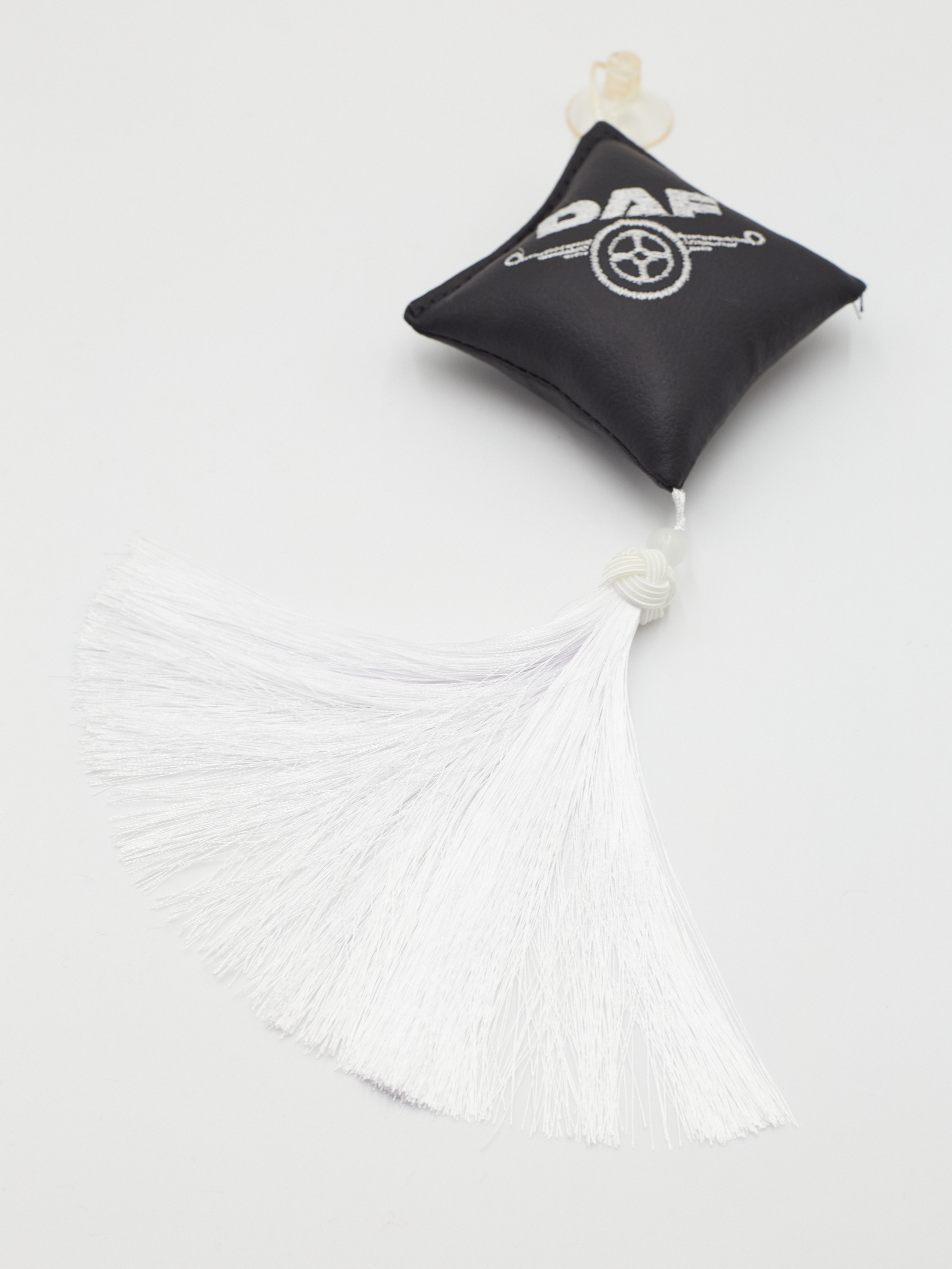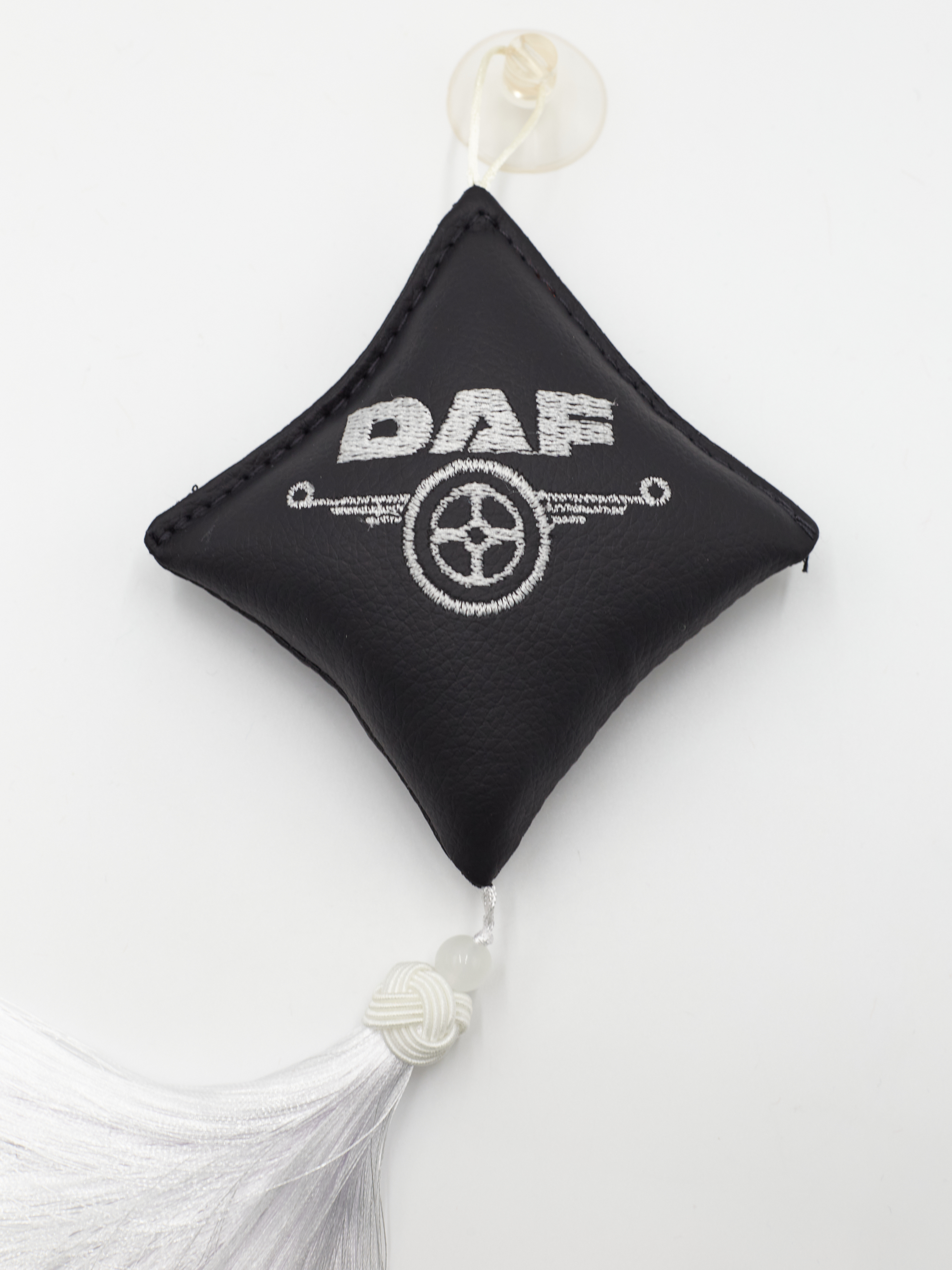 Ромб объемный на присоске DAF (экокожа, черный, белая вышивка, кисть)
