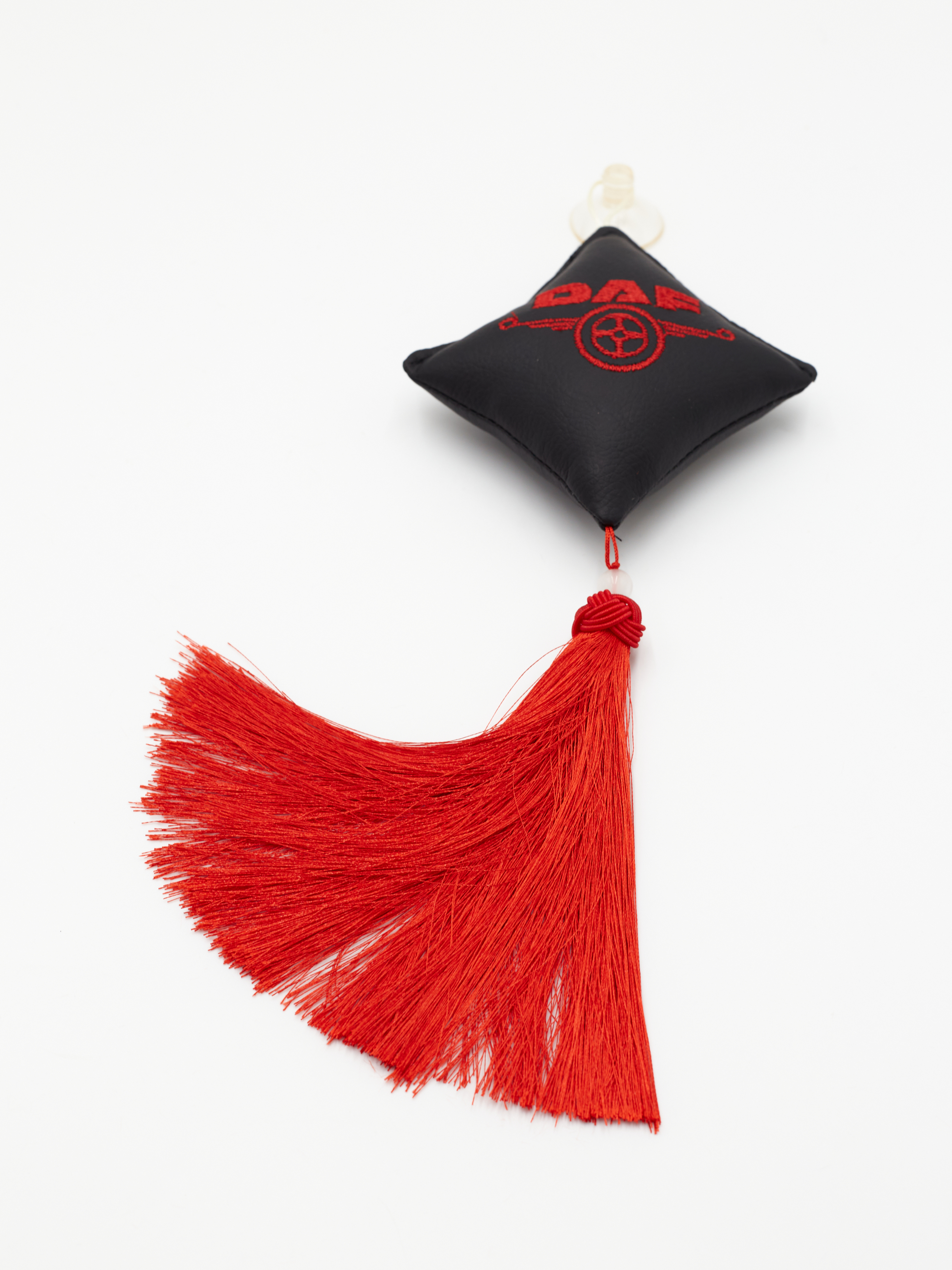 Ромб объемный на присоске DAF (экокожа, черный, красная вышивка, кисть)