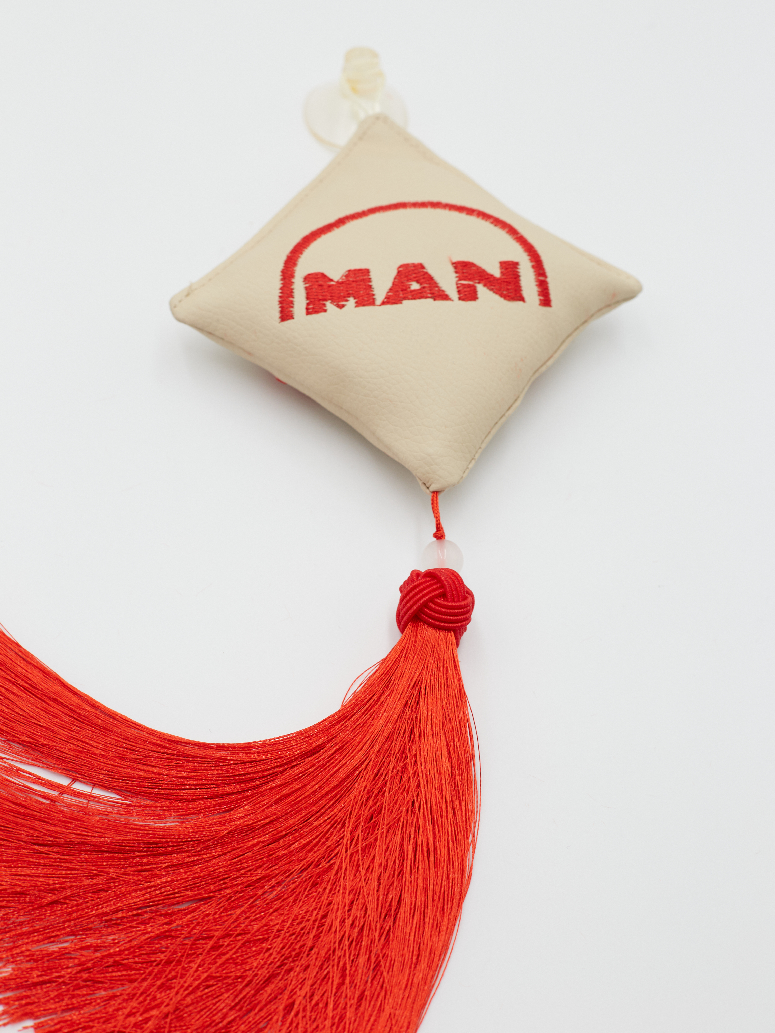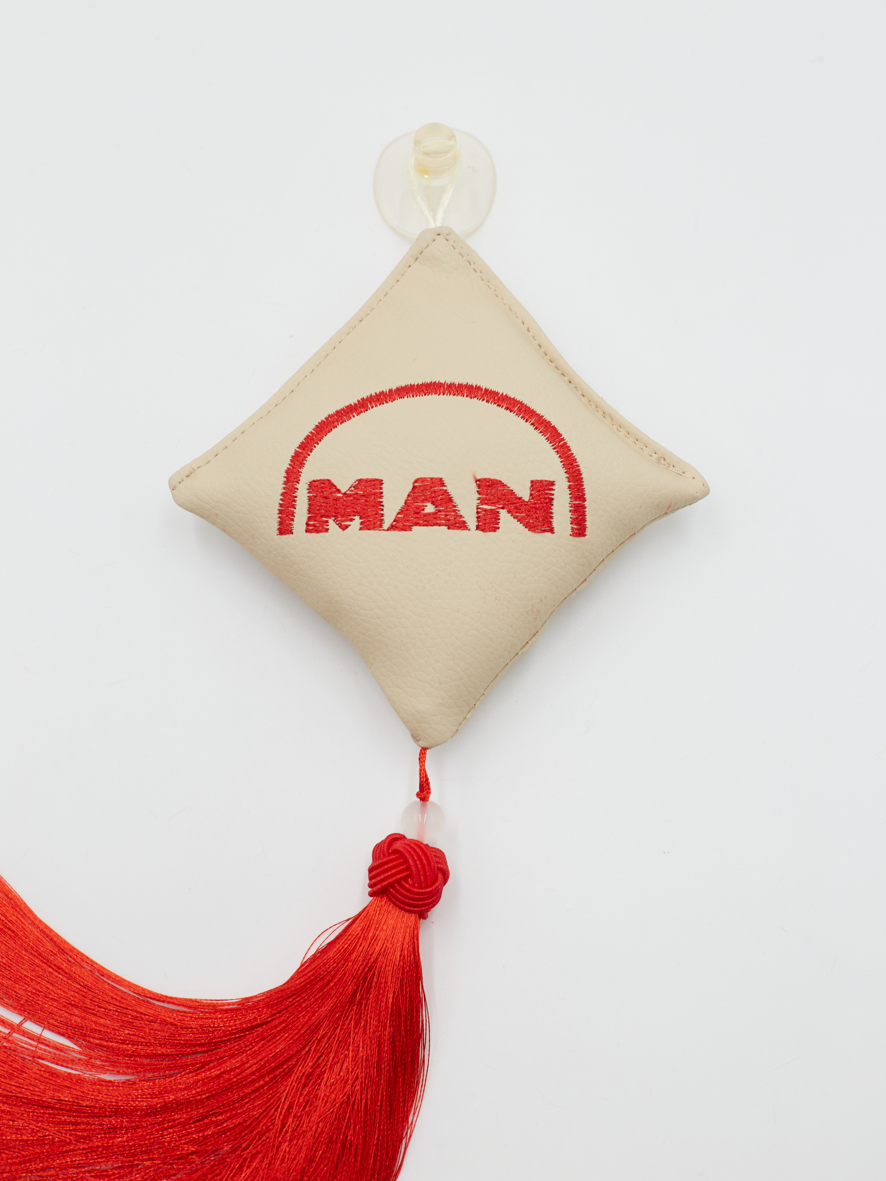 Ромб объемный на присоске MAN (экокожа, бежевый, красная вышивка, кисть)
