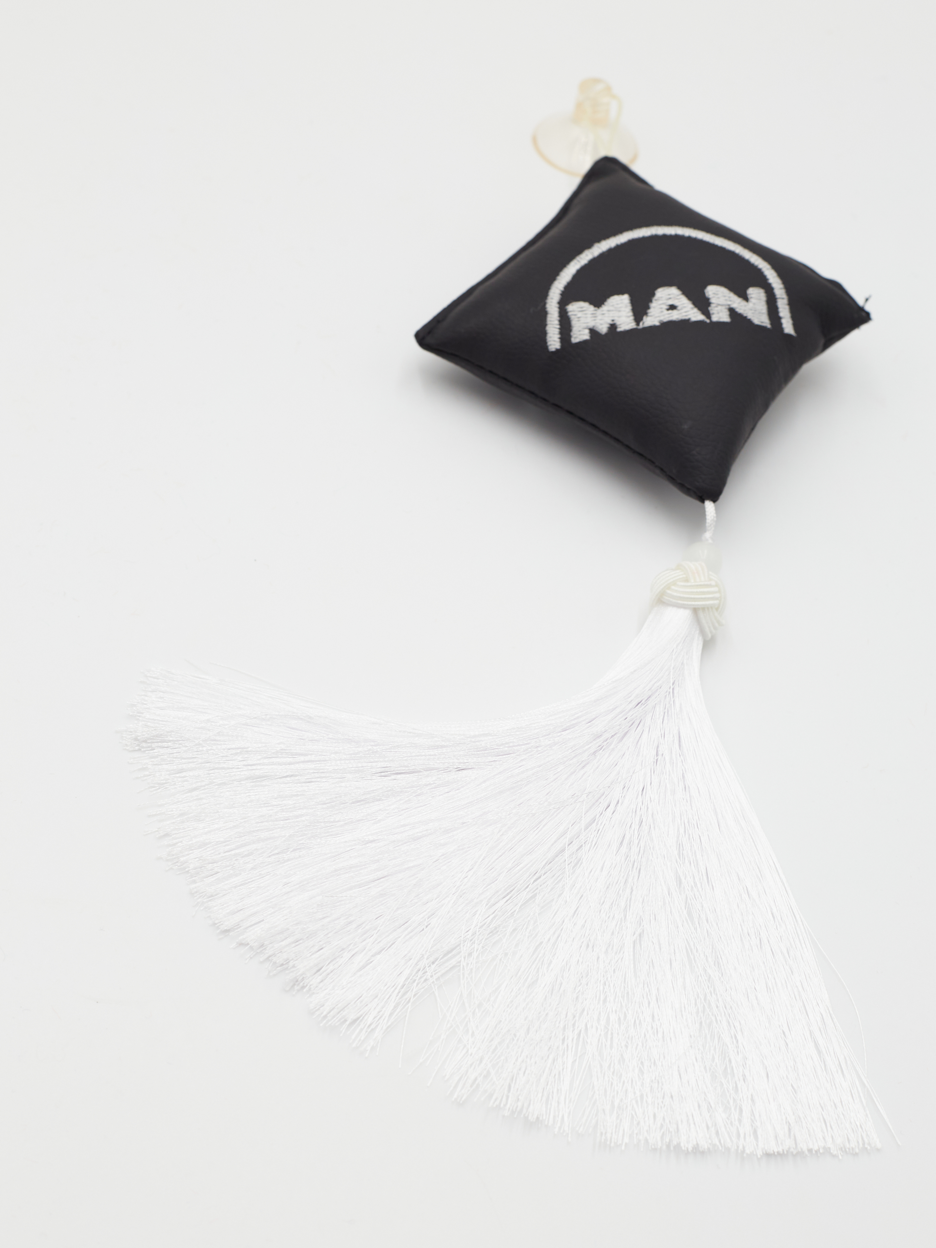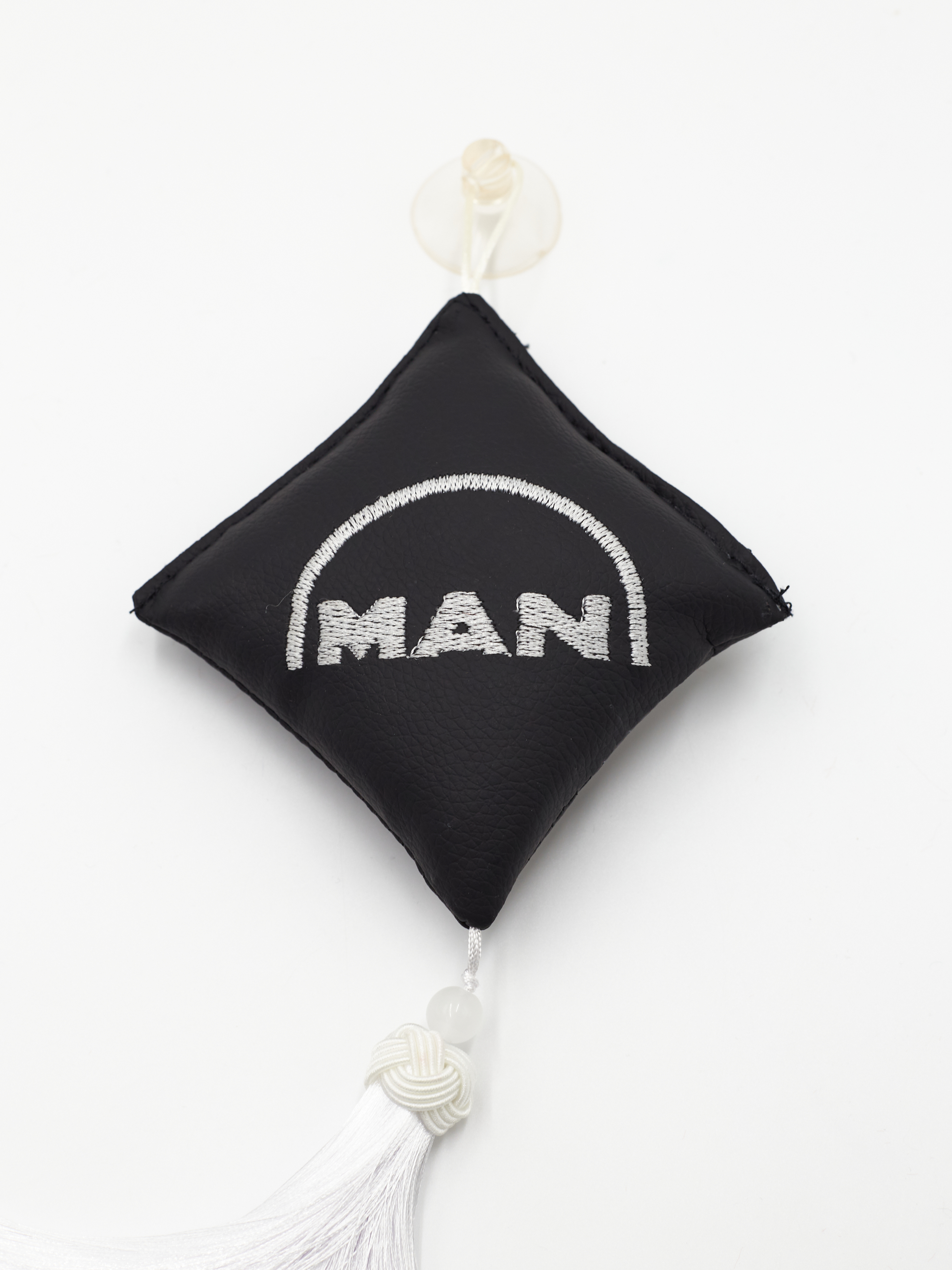 Ромб объемный на присоске MAN (экокожа, черный, белая вышивка, кисть)