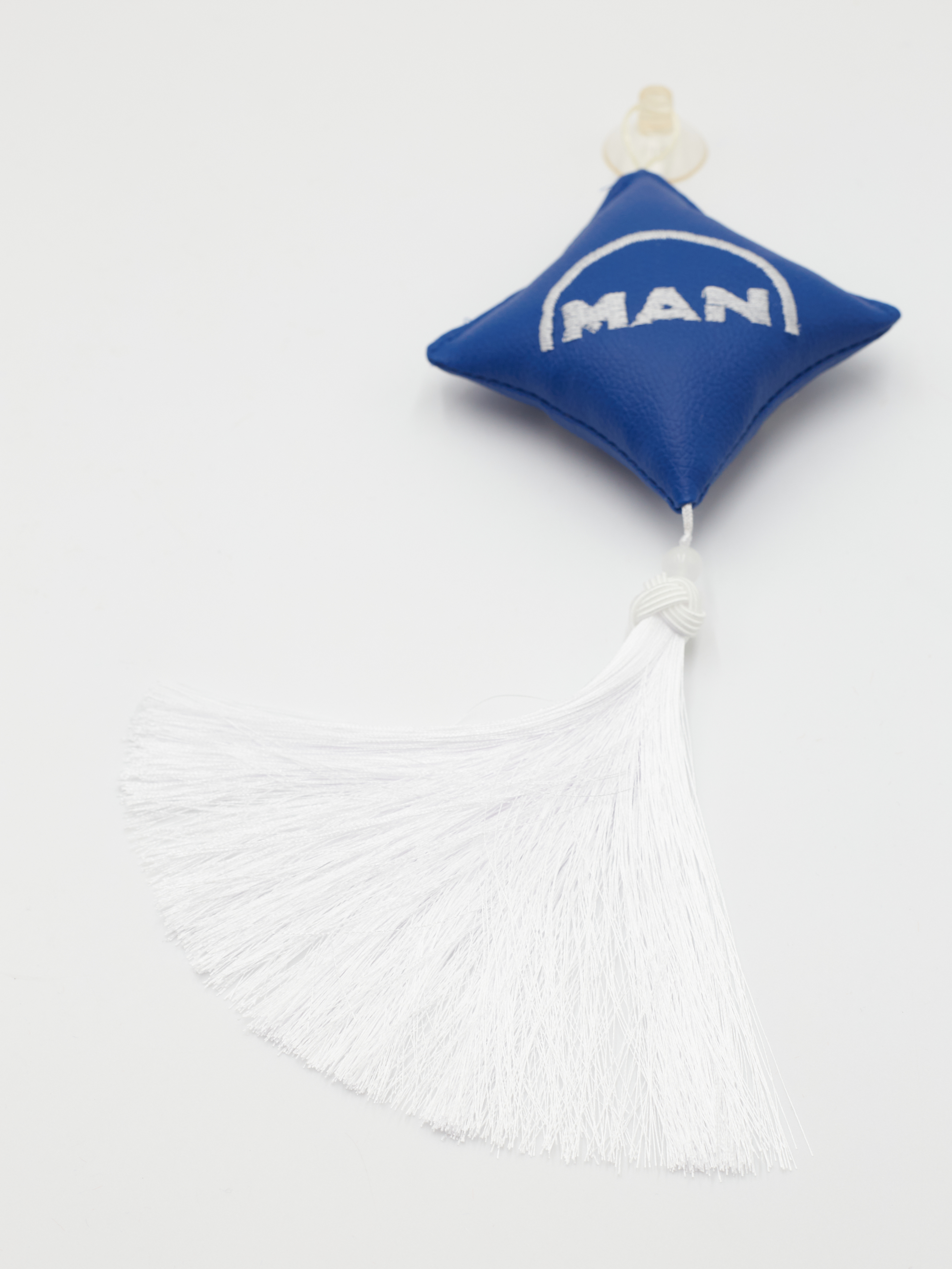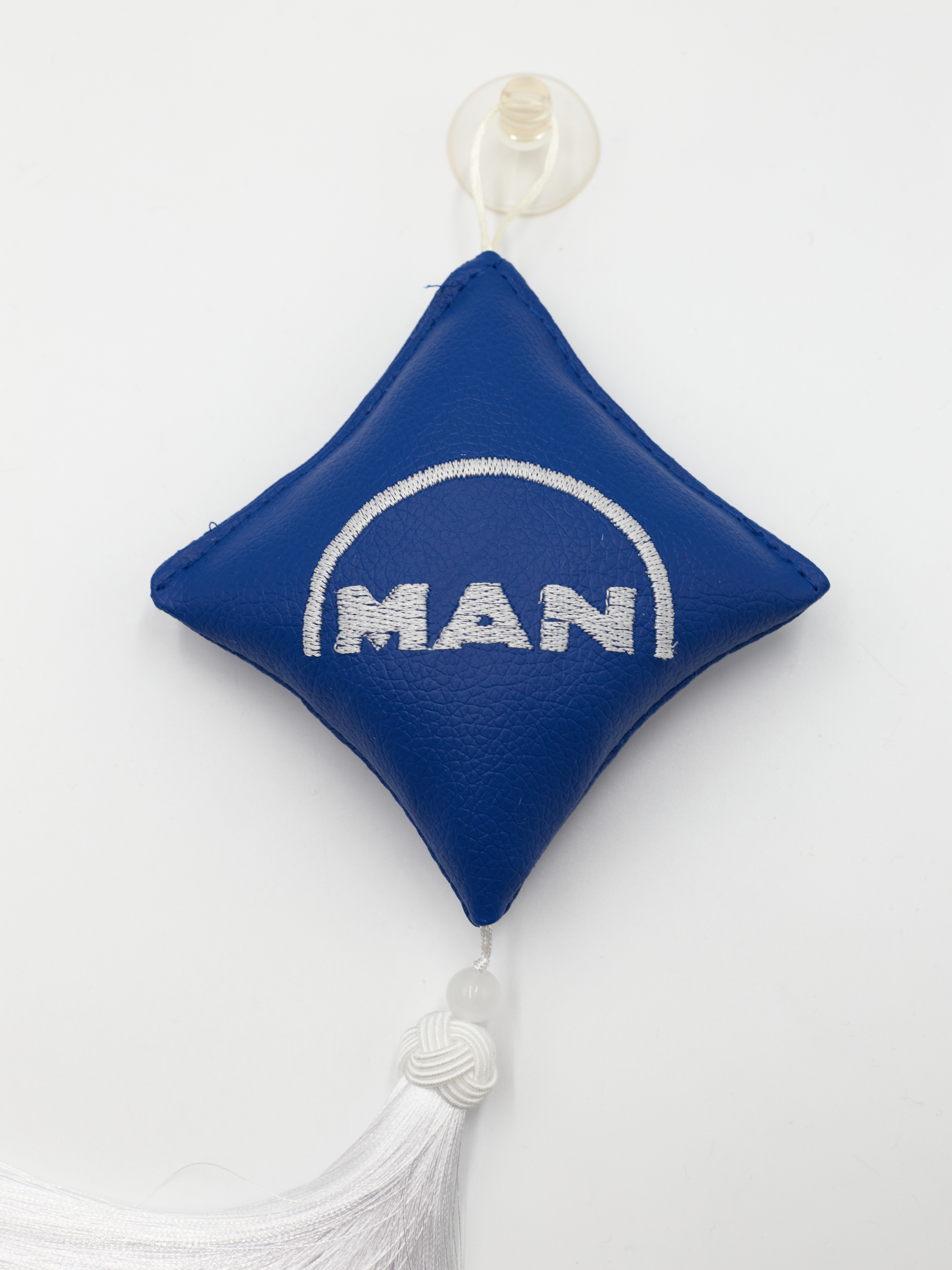 Ромб объемный на присоске MAN (экокожа, синий, белая вышивка, кисть)