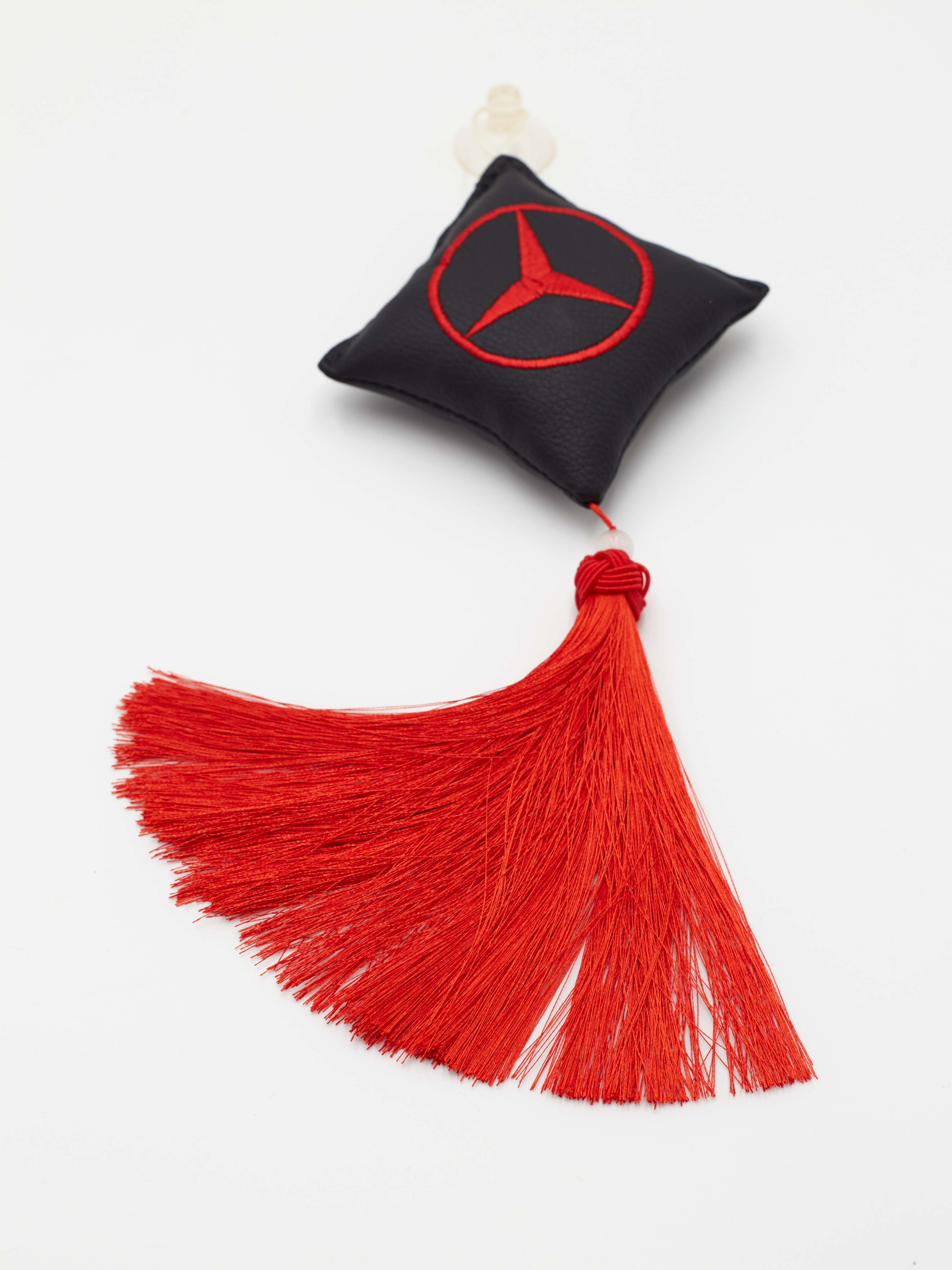 Ромб объемный на присоске MERCEDES (экокожа, черный, красная вышивка, кисть)