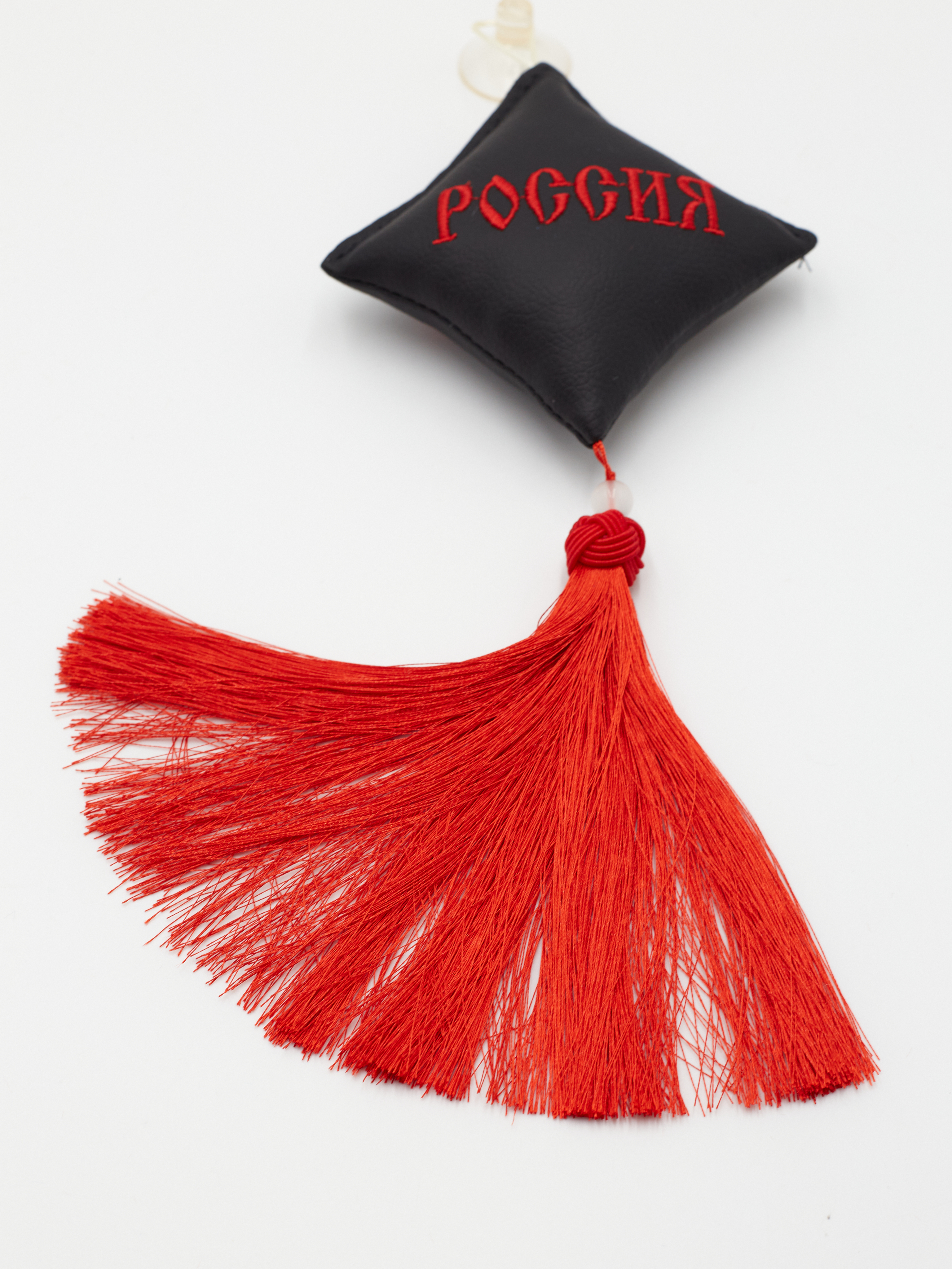Ромб объемный на присоске РОССИЯ (экокожа, черный, красная вышивка, кисть)