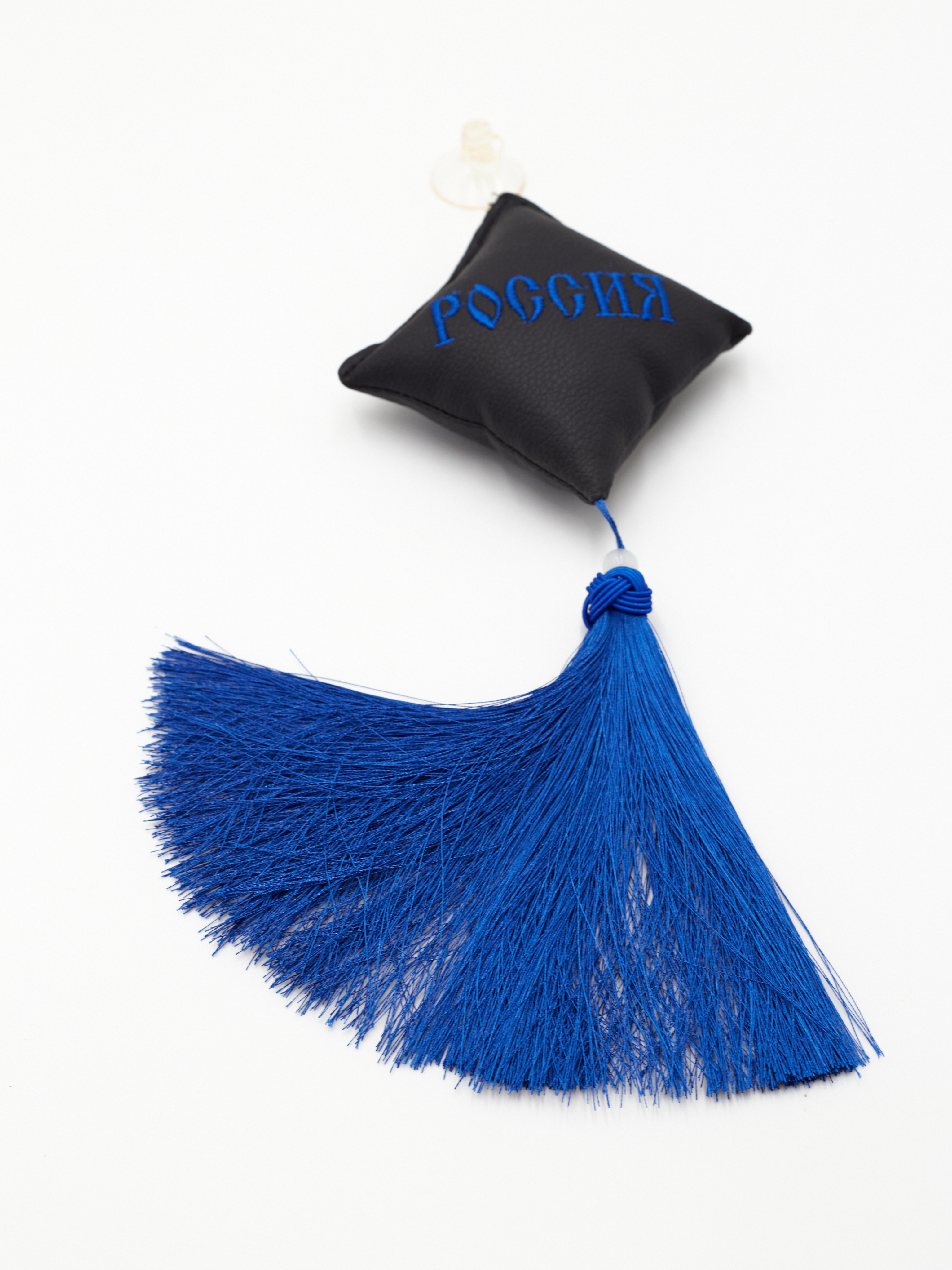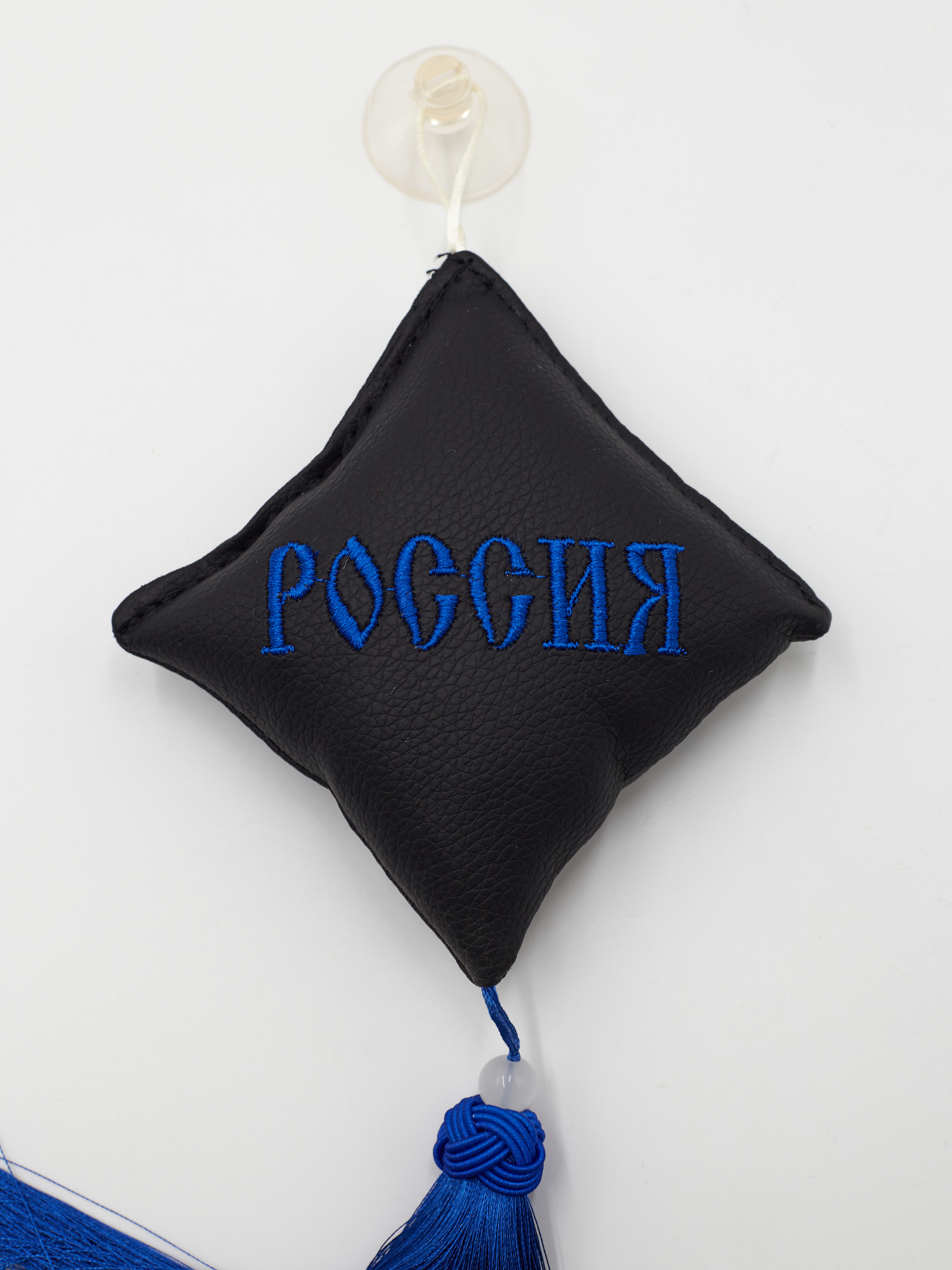 Ромб объемный на присоске РОССИЯ (экокожа, черный, синяя вышивка, кисть)