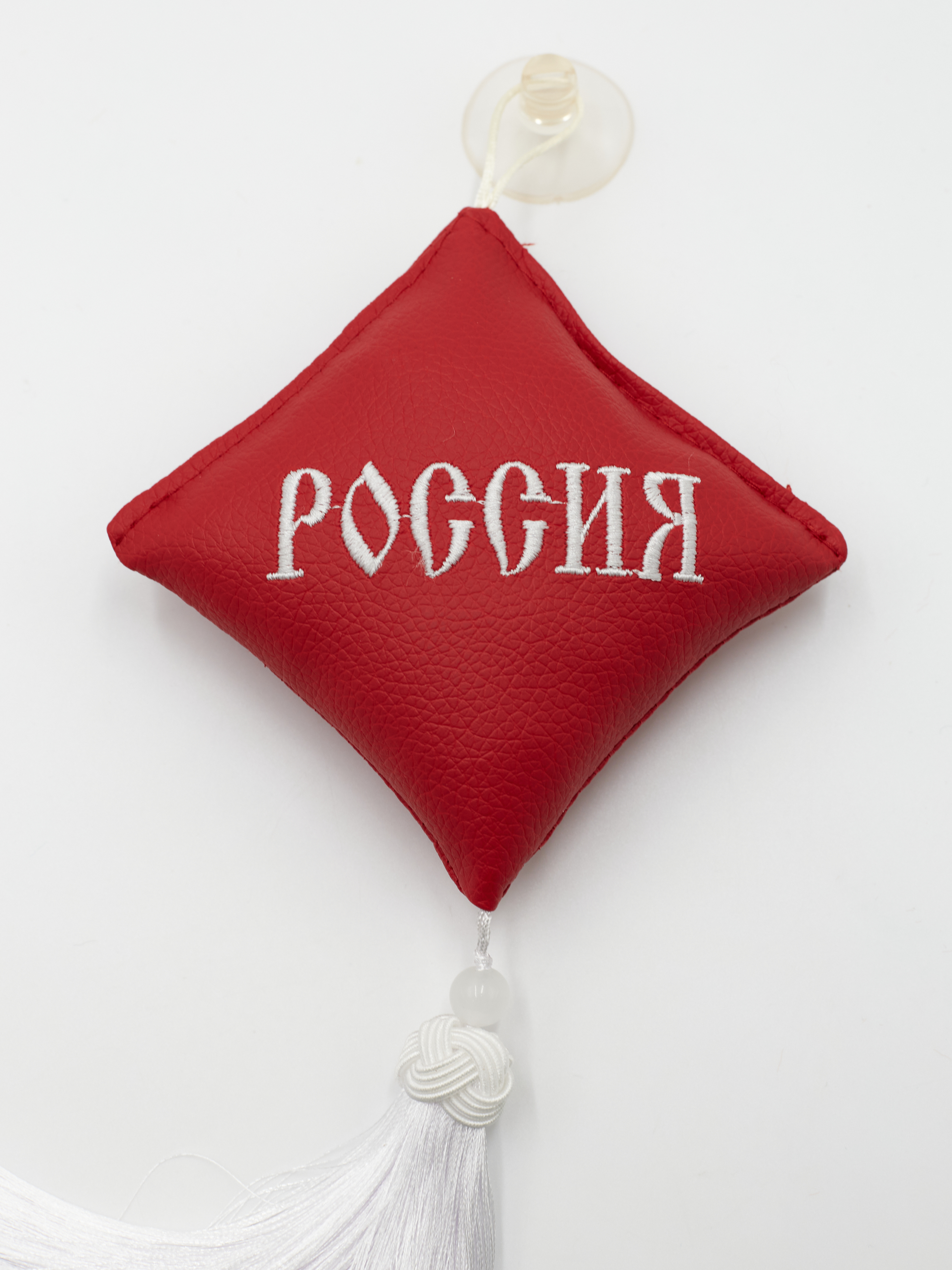 Ромб объемный на присоске РОССИЯ (экокожа, красный, белая вышивка, кисть)