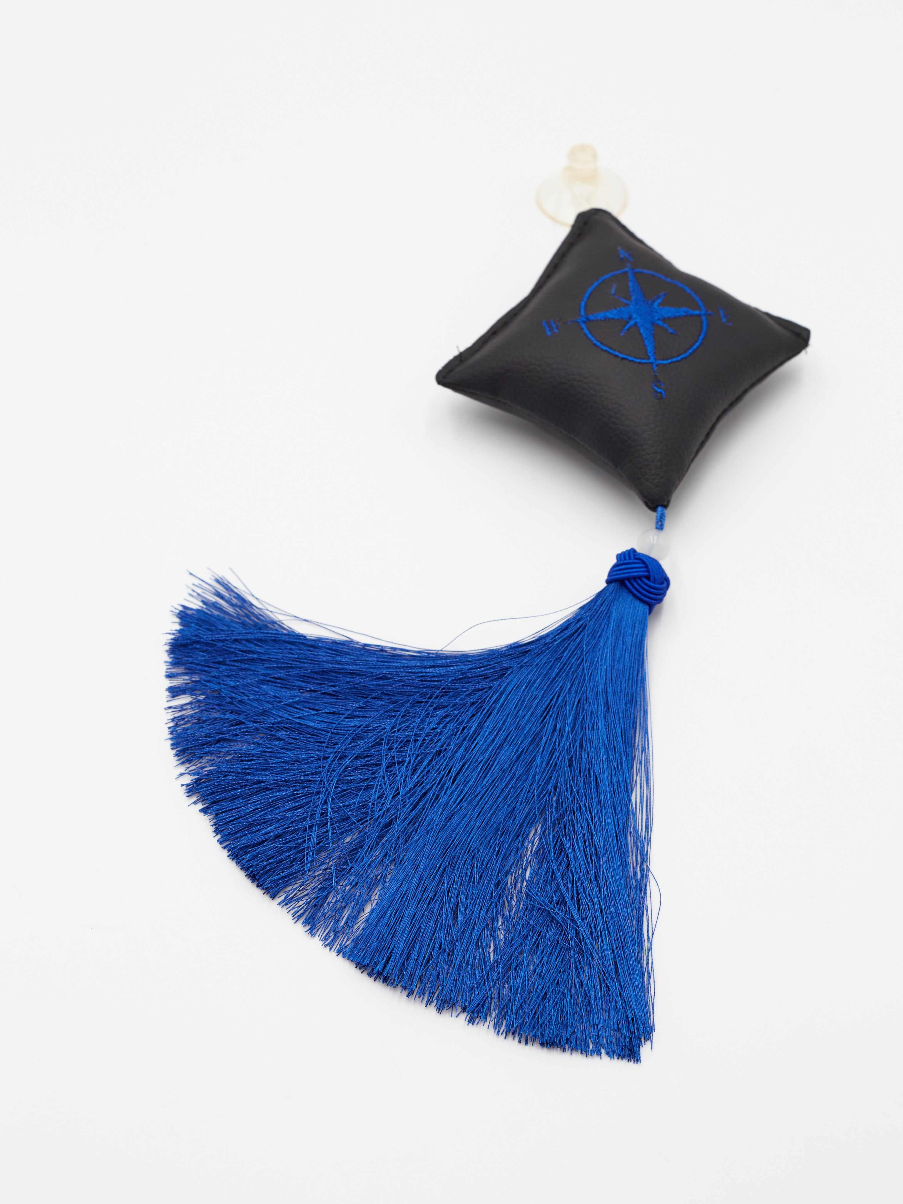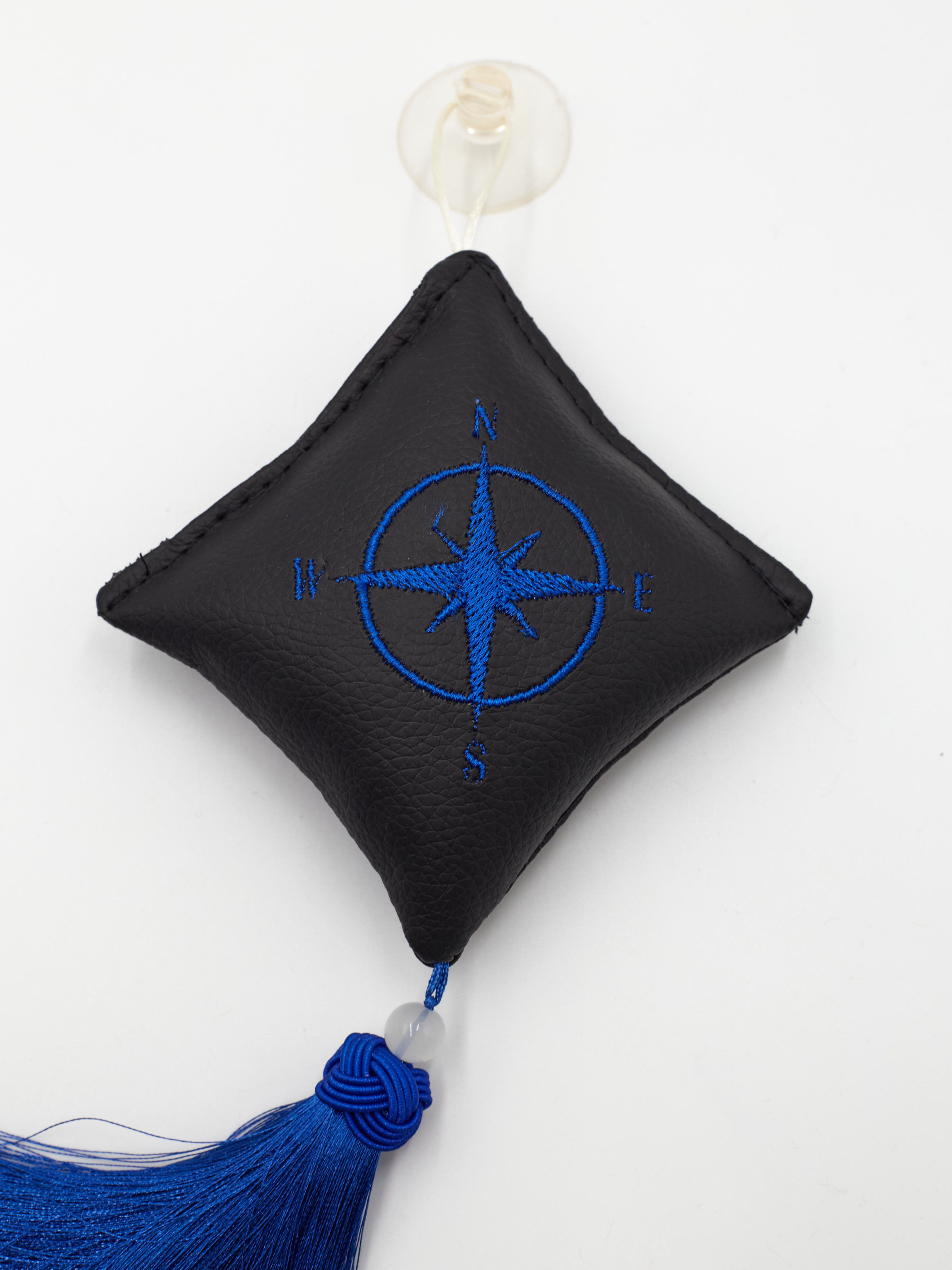 Ромб объемный на присоске Роза Ветров (экокожа, черный, синяя вышивка, кисть)