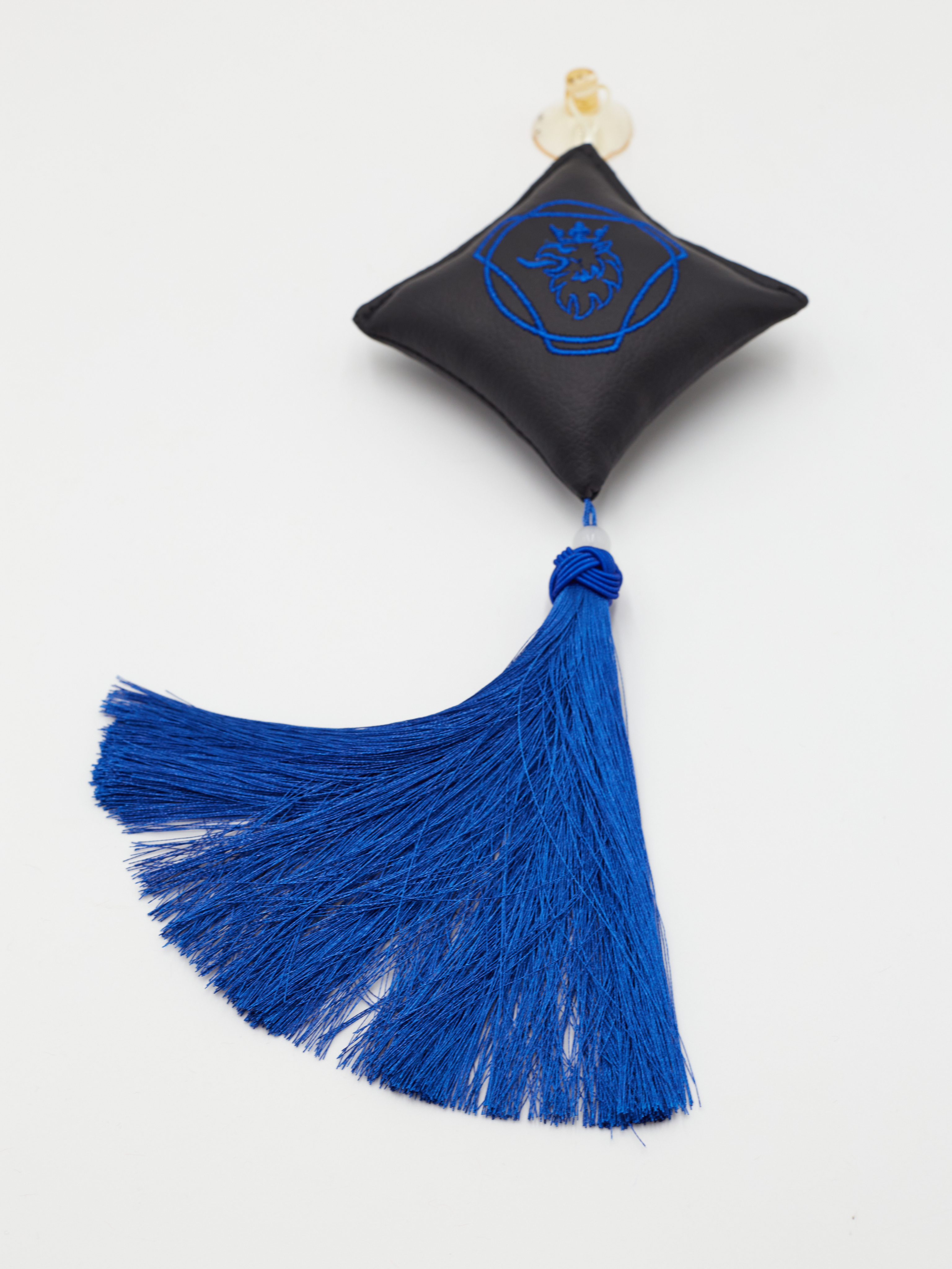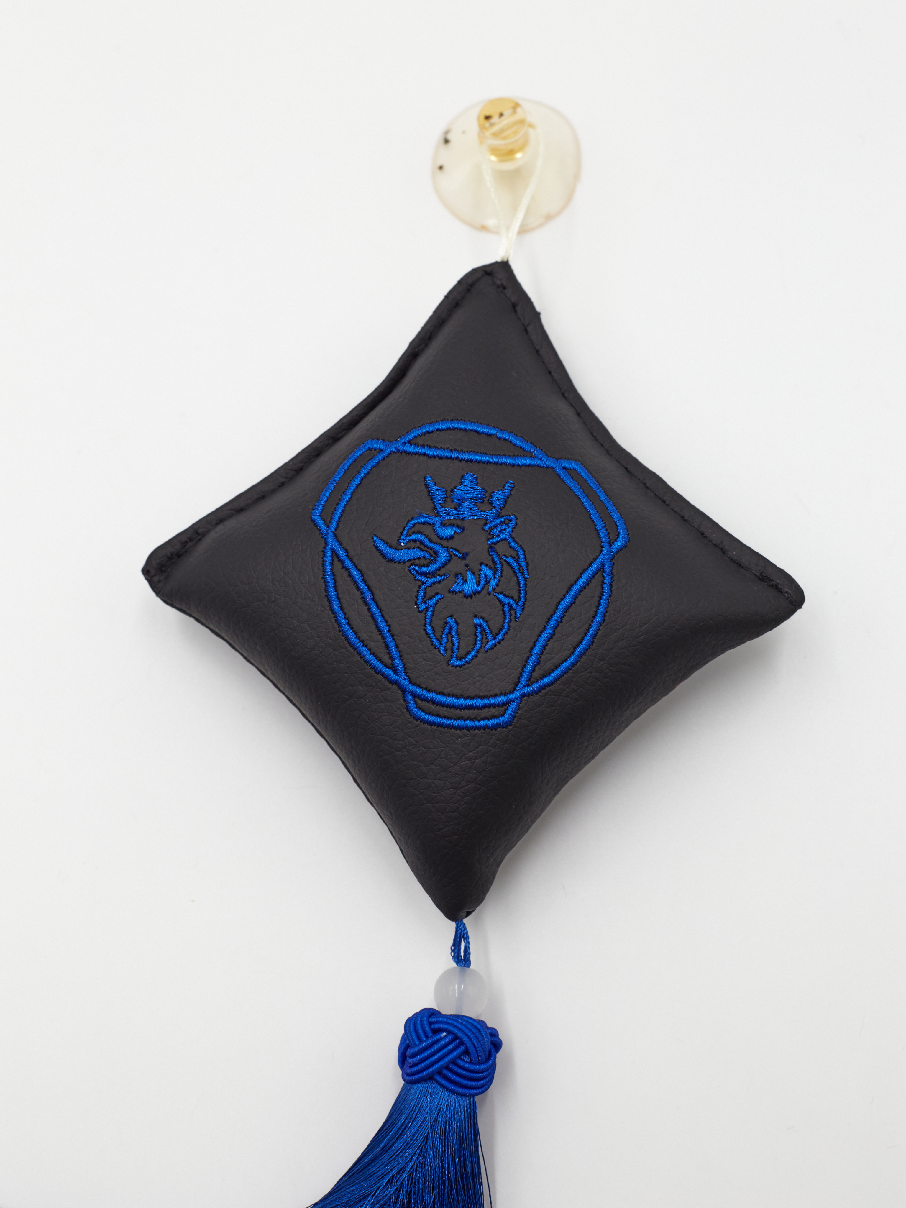 Ромб объемный на присоске SCANIA (экокожа, черный, синяя вышивка, кисть)