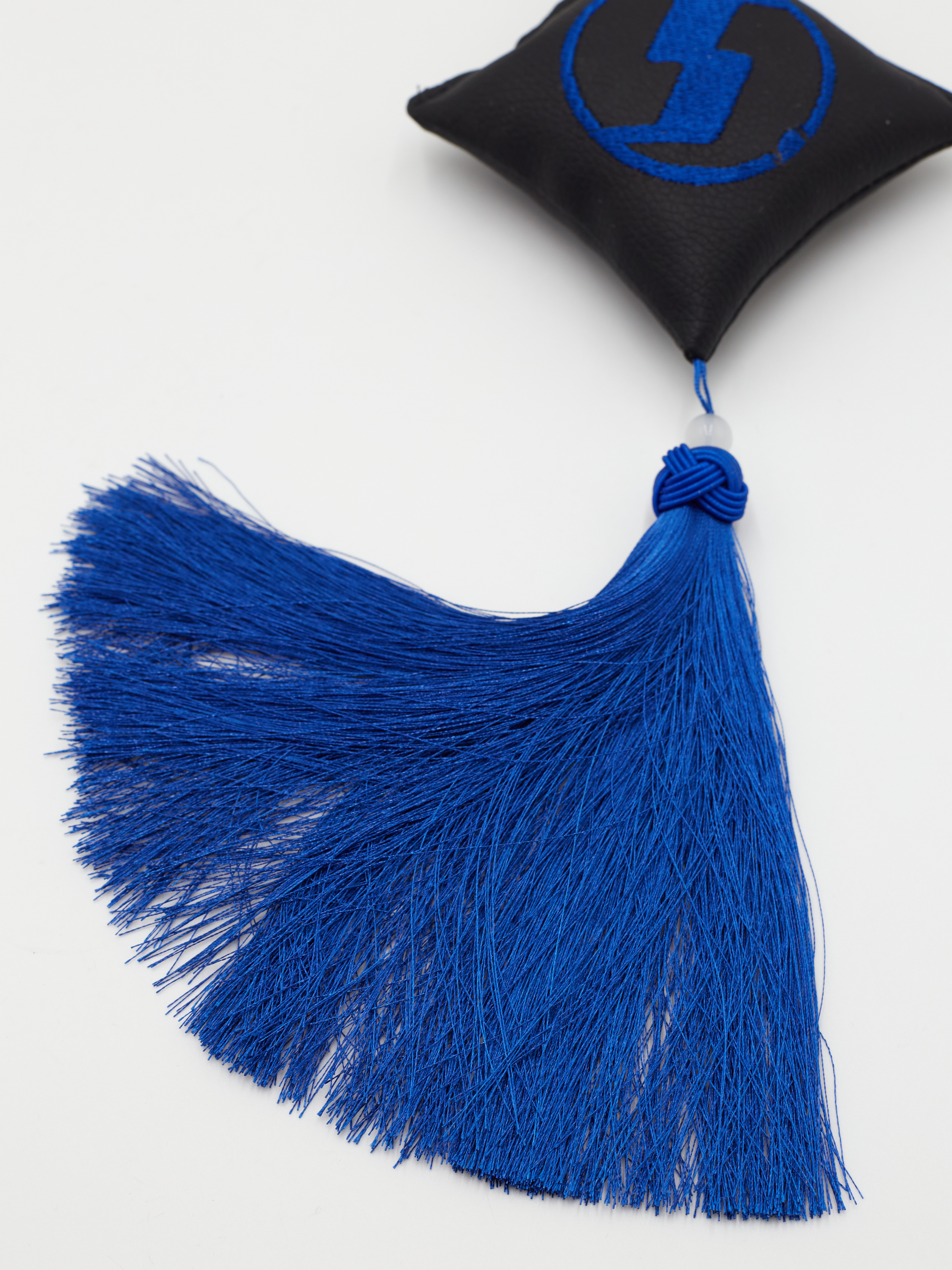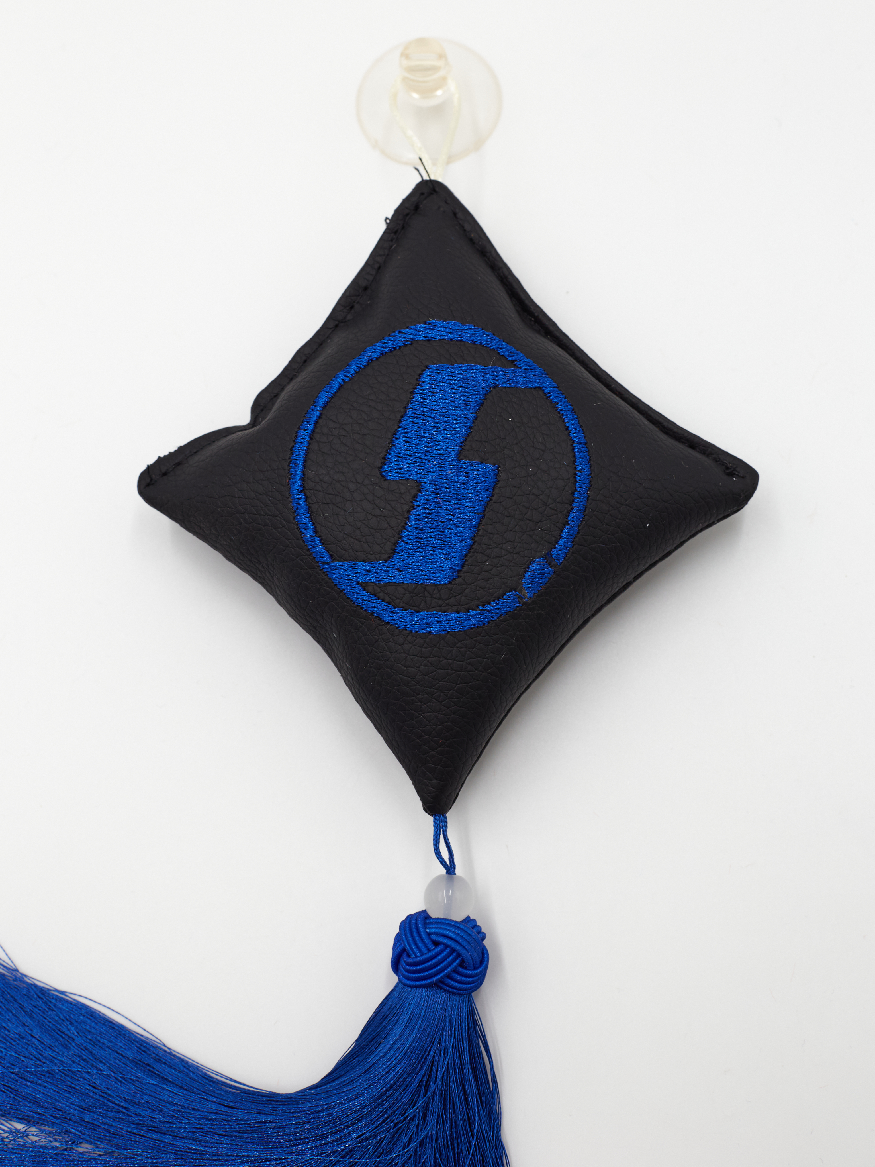 Ромб объемный на присоске SHACMAN (экокожа, черный, синяя вышивка, кисть)