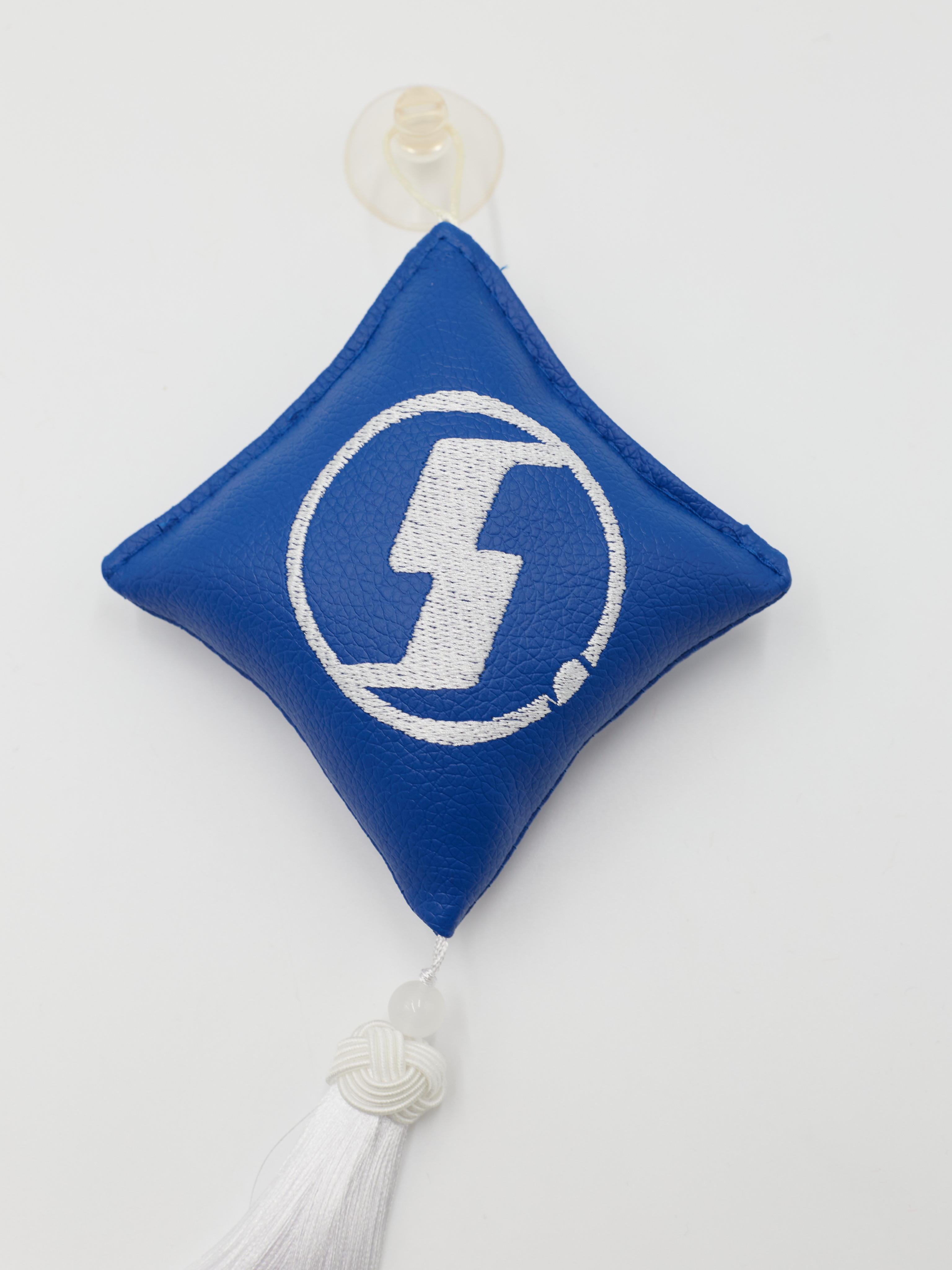 Ромб объемный на присоске SHACMAN (экокожа, синий, белая вышивка, кисть)