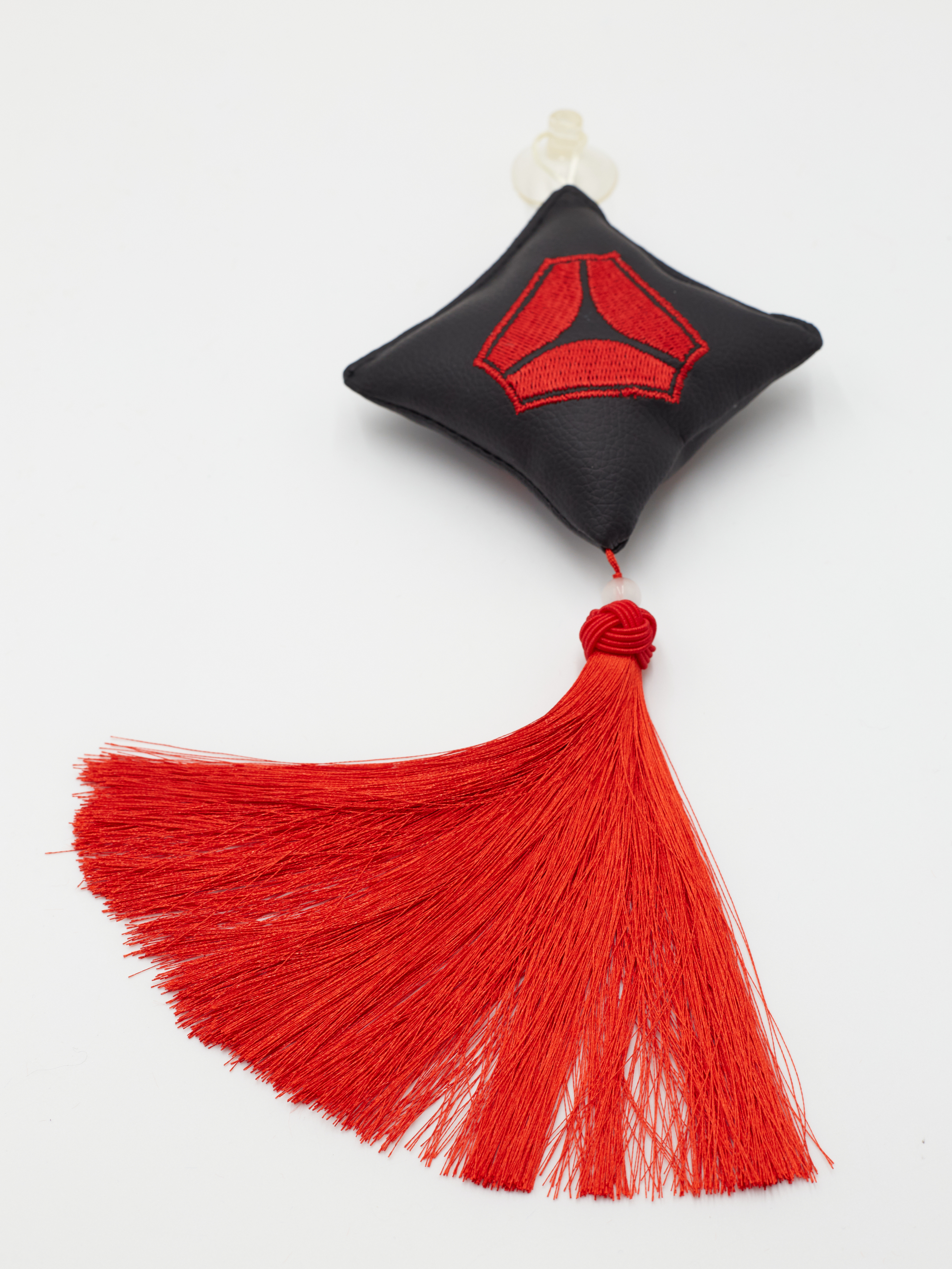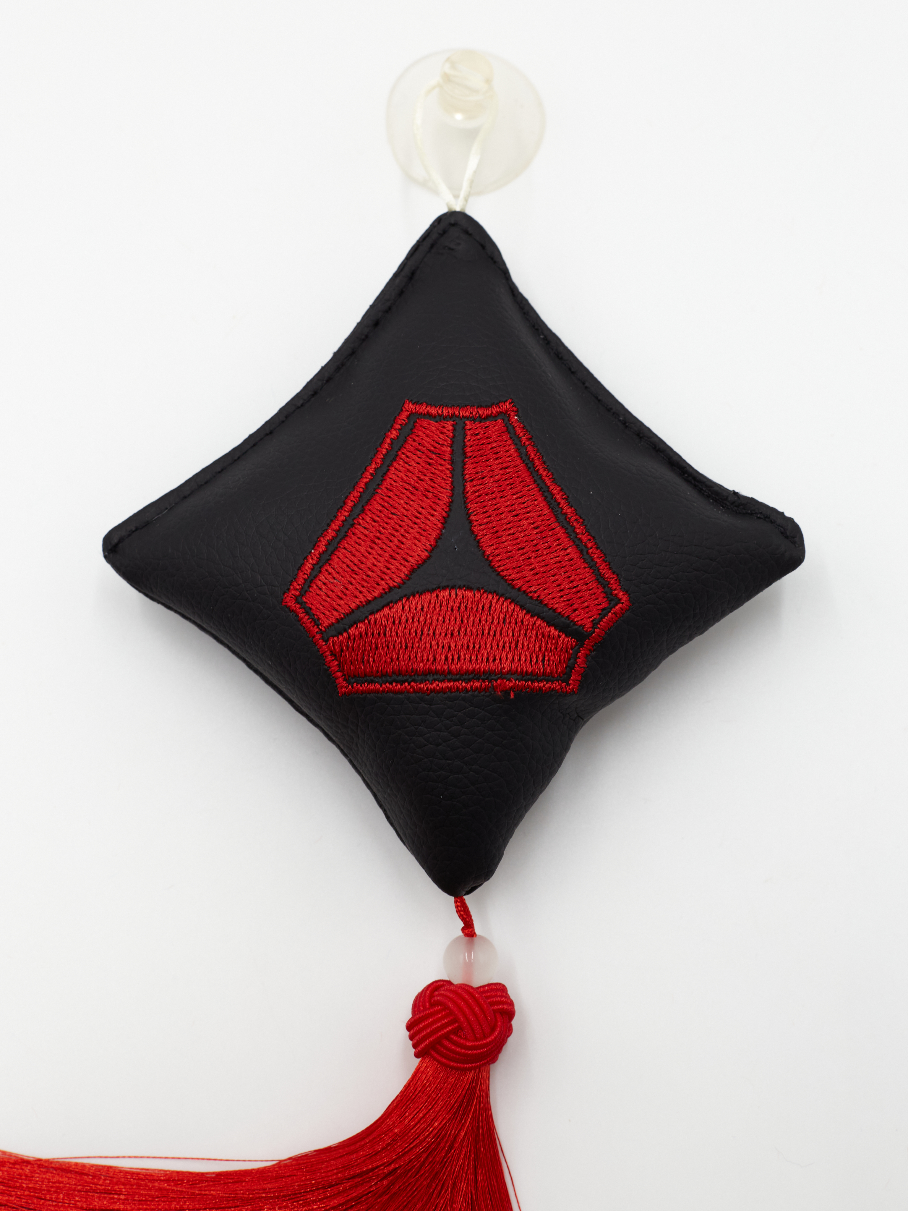 Ромб объемный на присоске SITRAK (экокожа, черный, красная вышивка, кисть)