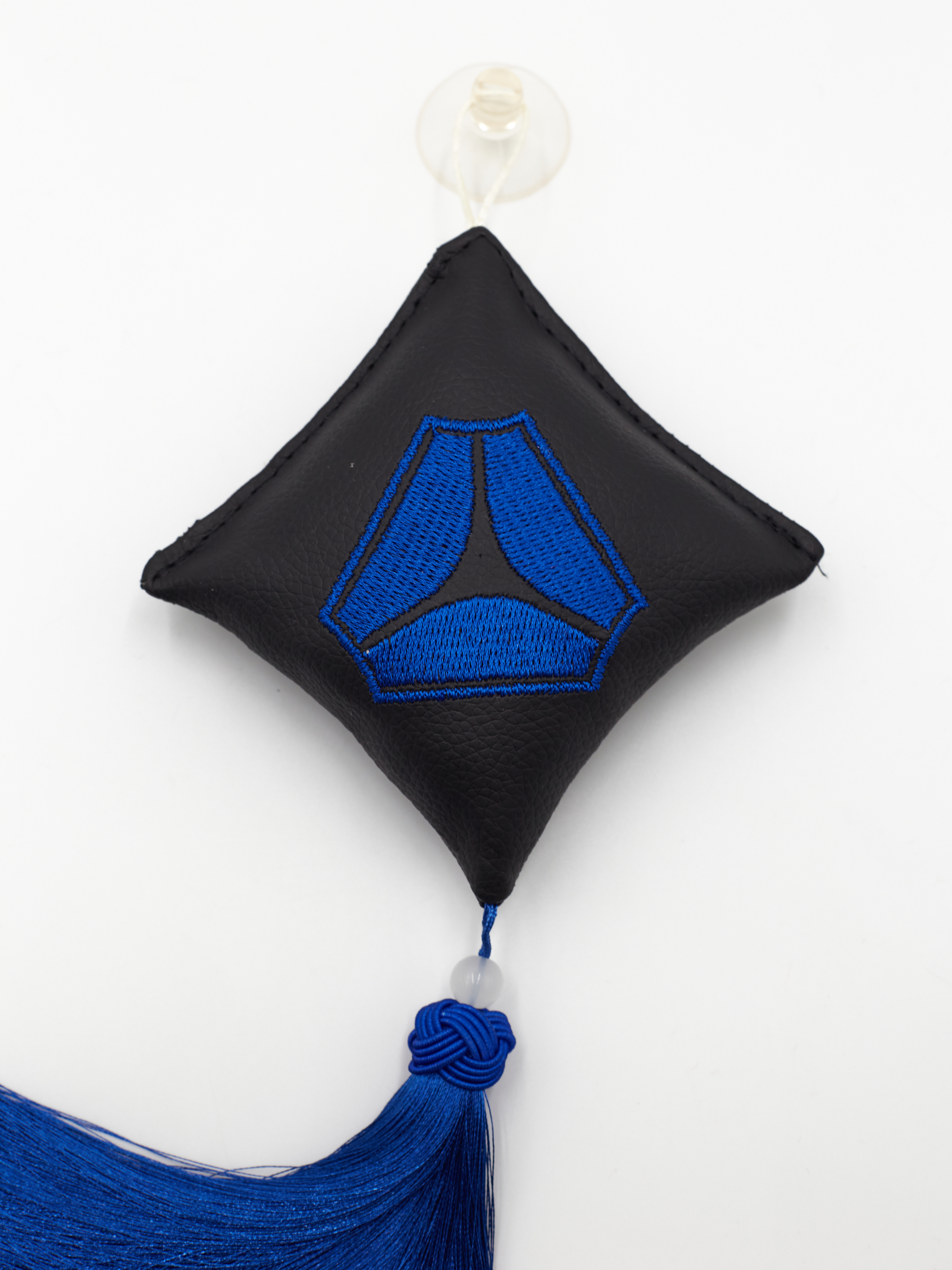 Ромб объемный на присоске SITRAK (экокожа, черный, синяя вышивка, кисть)