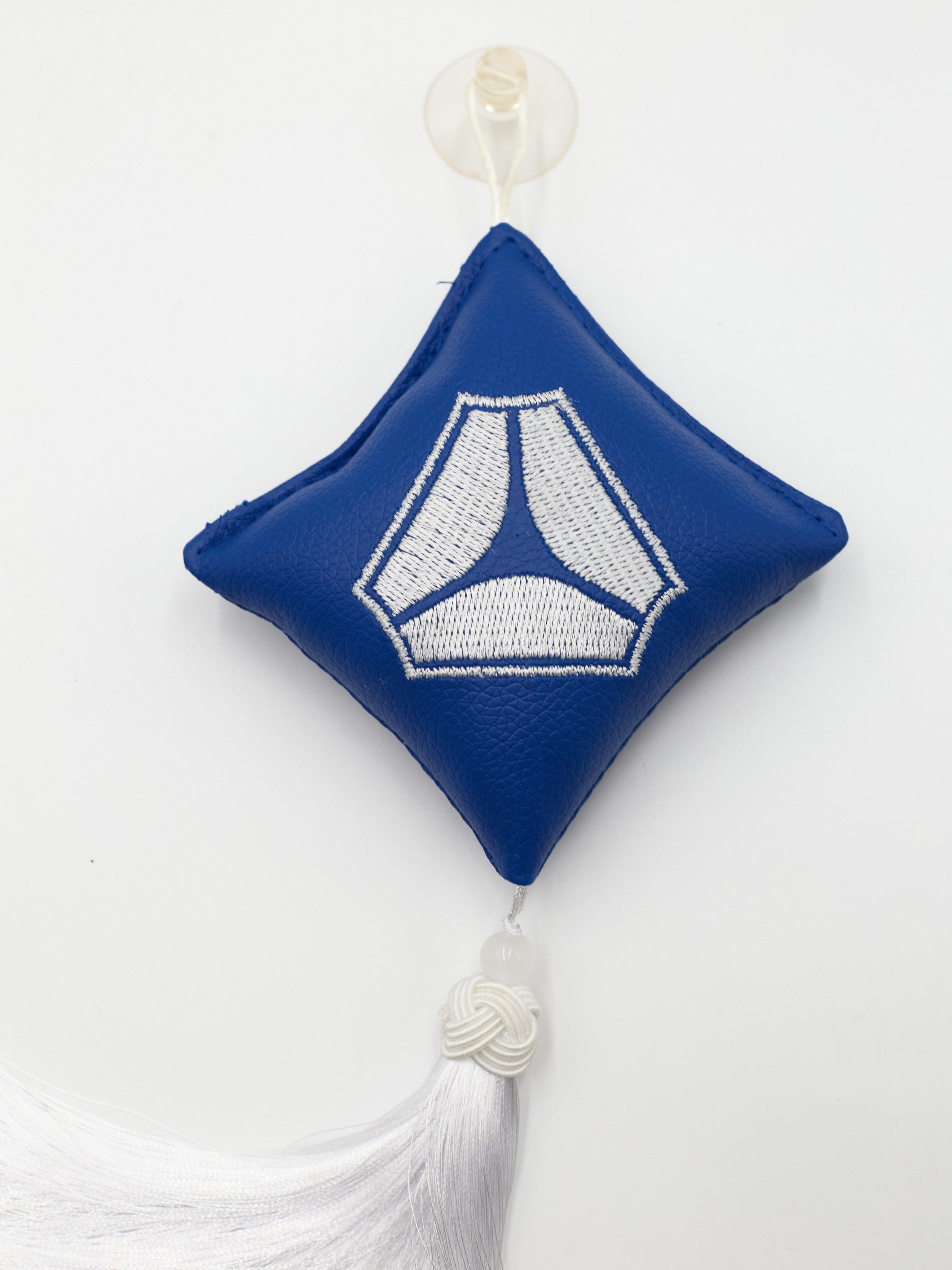 Ромб объемный на присоске SITRAK (экокожа, синий, белая вышивка, кисть)