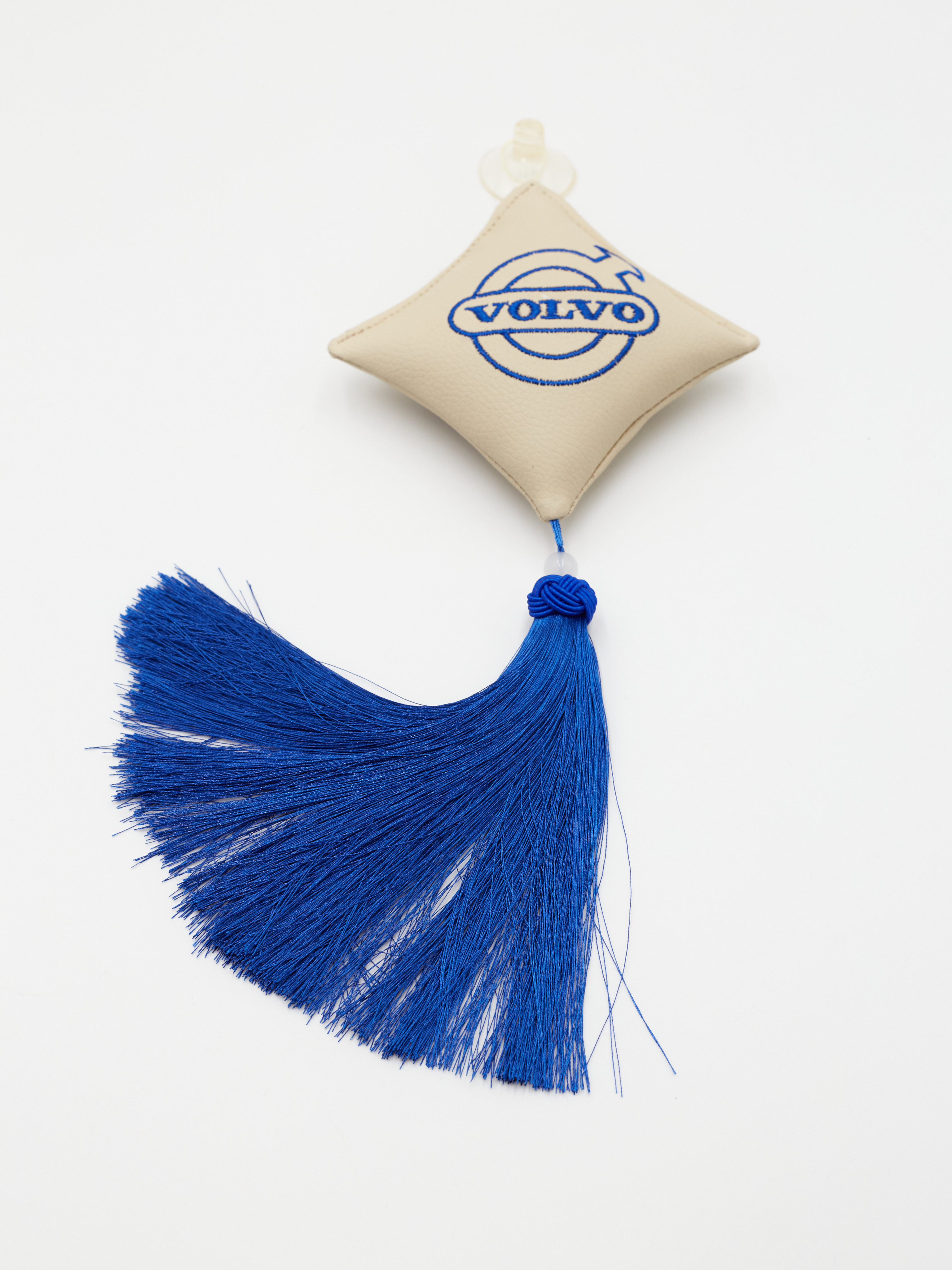 Ромб объемный на присоске VOLVO (экокожа, бежевый, синяя вышивка, кисть)
