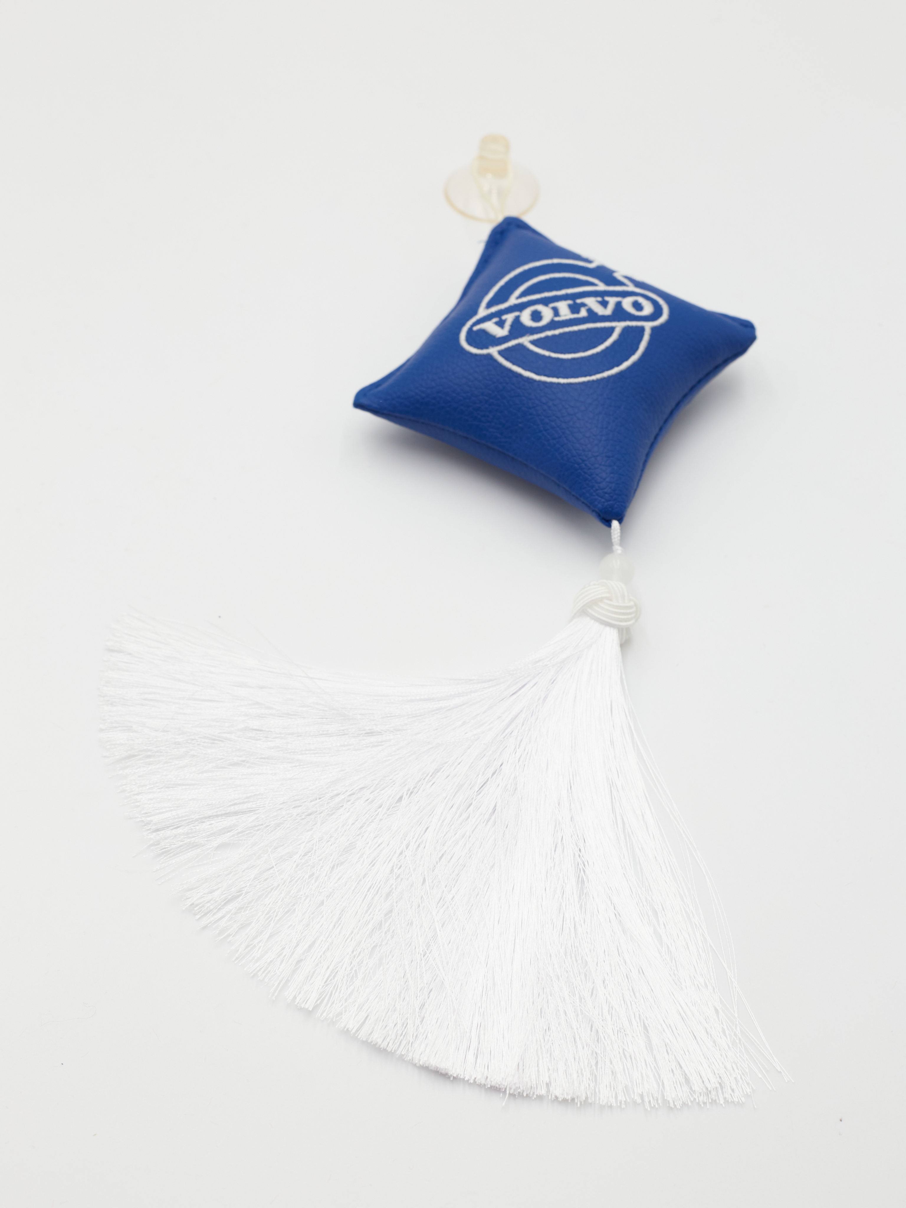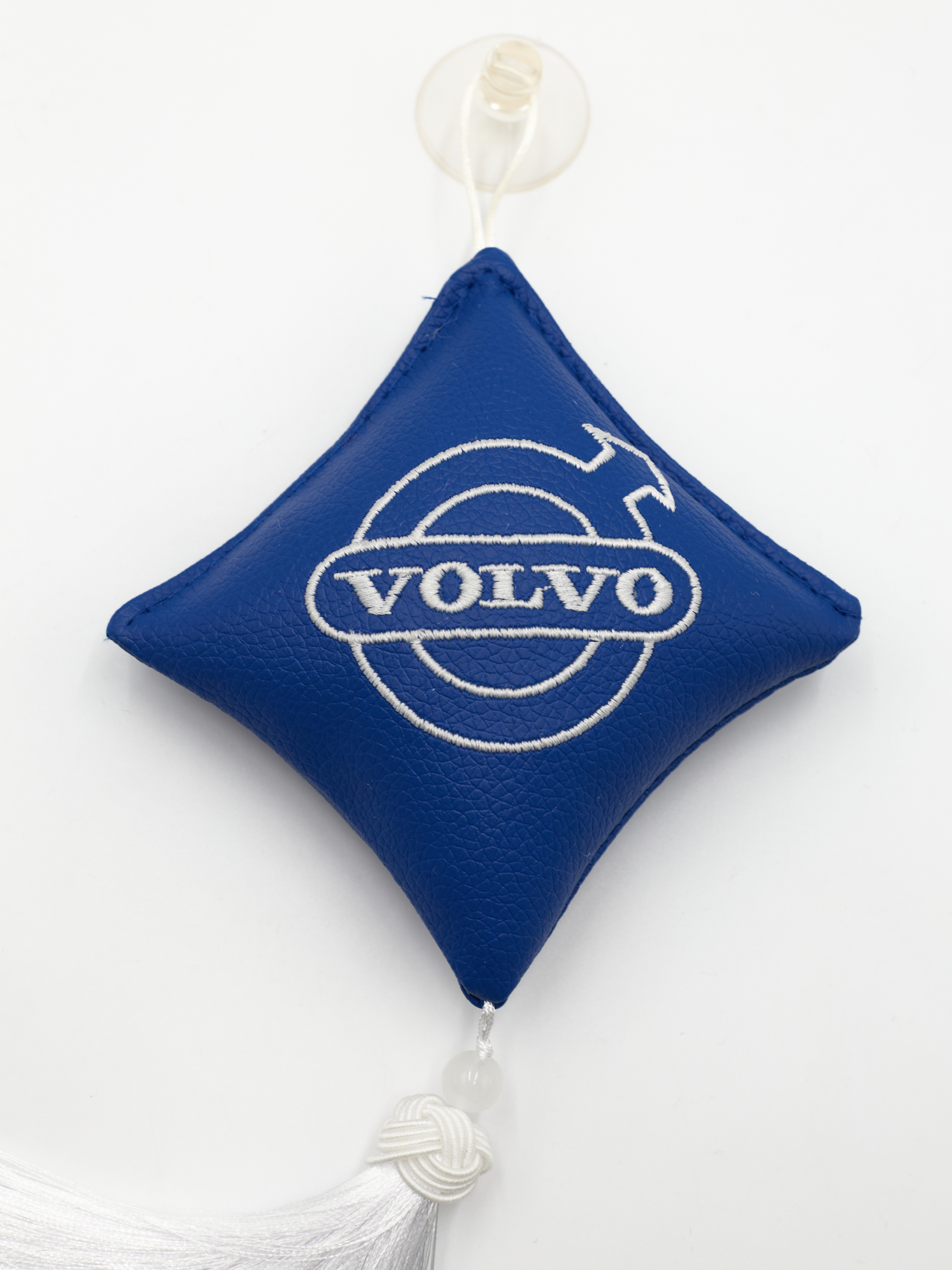 Ромб объемный на присоске VOLVO (экокожа, синий, белая вышивка, кисть)