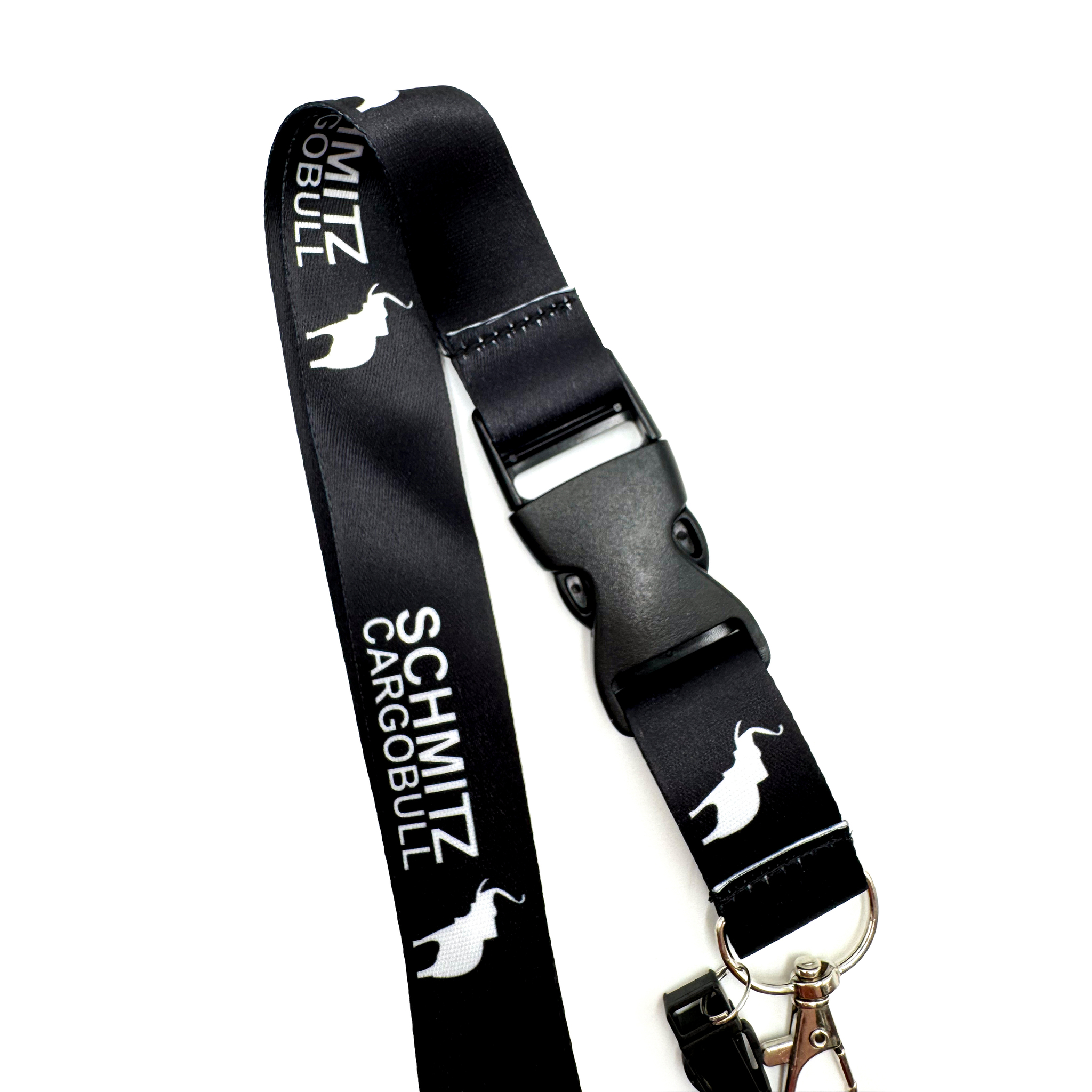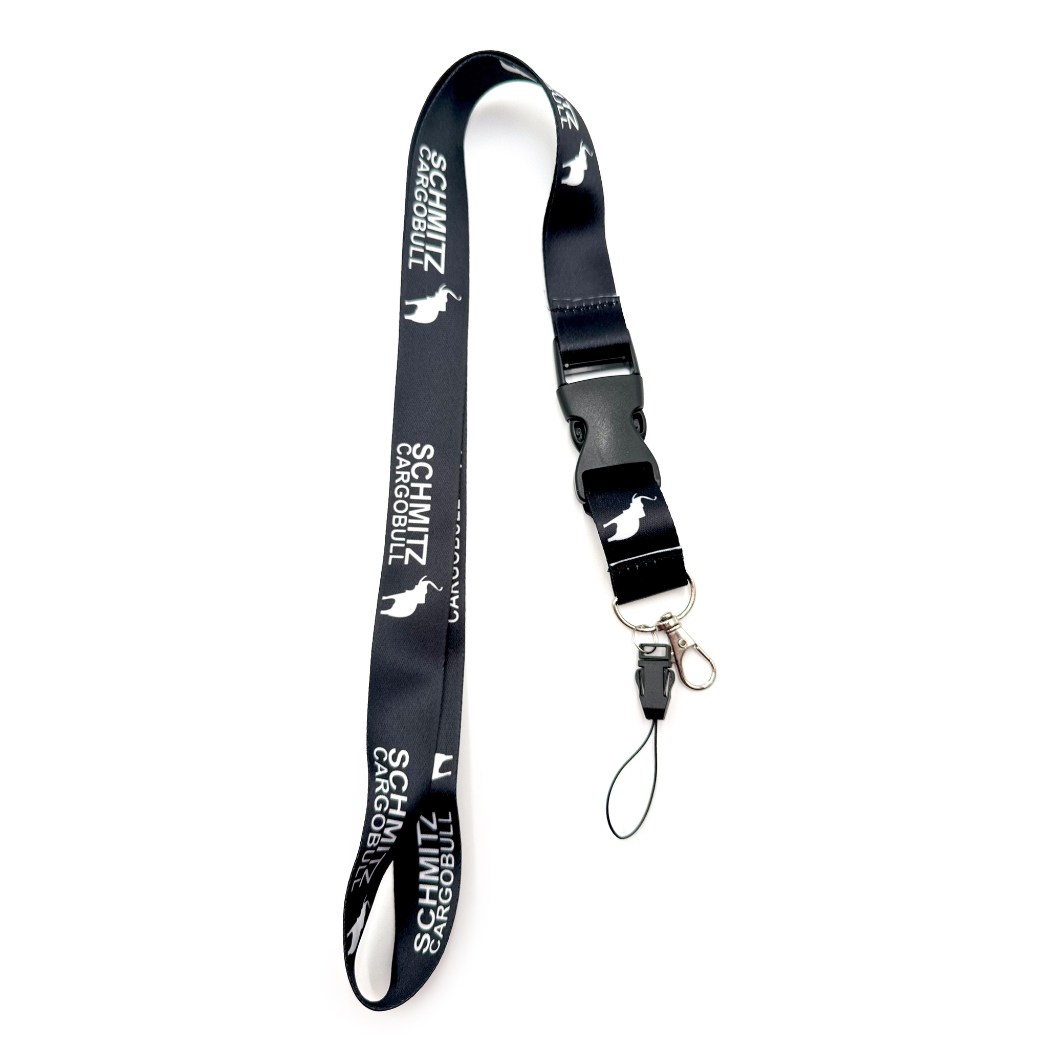 Шнурок на шею SCHMITZ (ШМИТЦ). Ланъярд для ключей, бейджа, телефона. Черный цвет с белым лого.