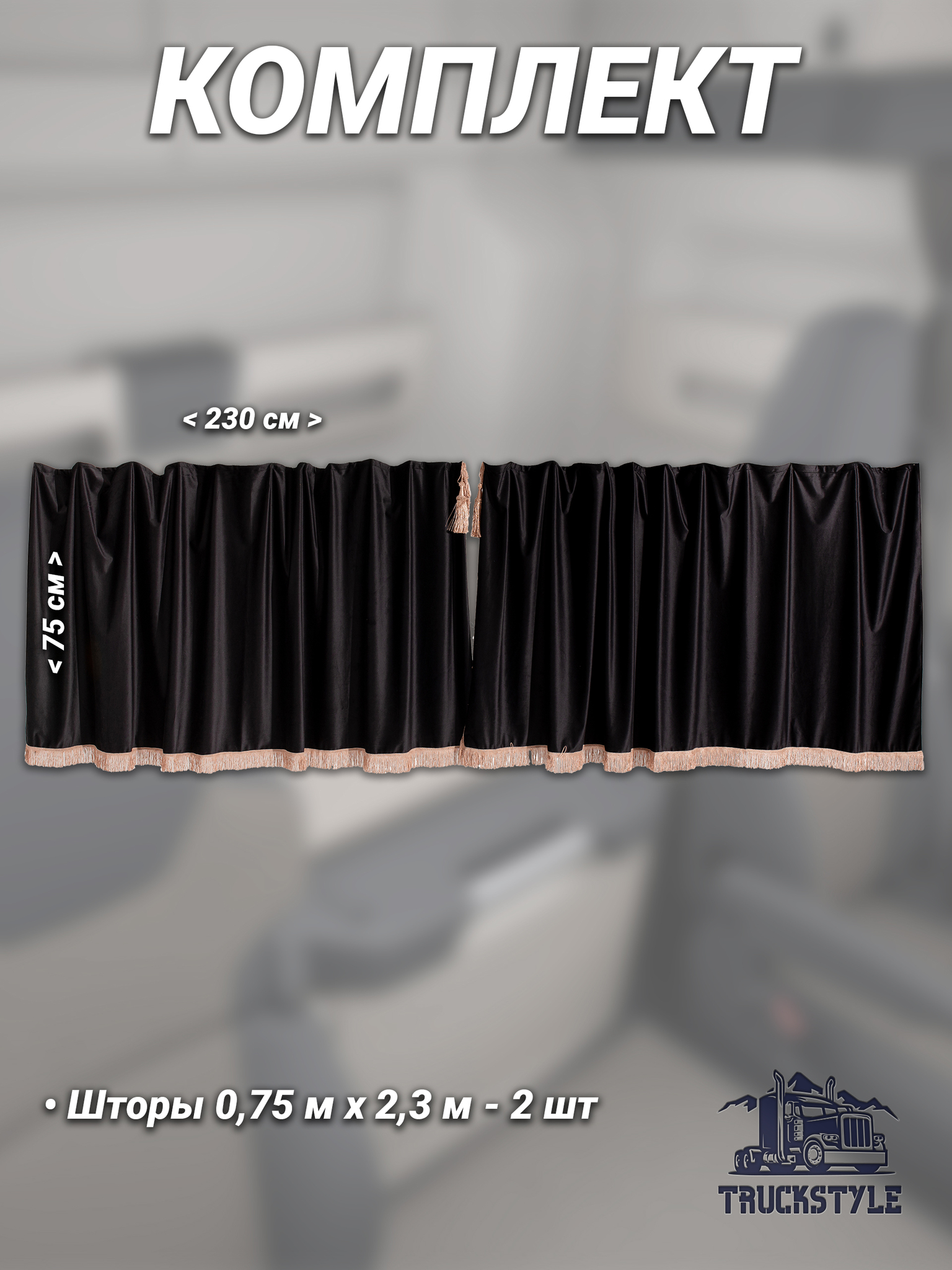 Представляем шторы на лобовое и передние двери с бахромой и кистями, специально разработанные для автокабин Volvo, Scania, MAN, DAF, Merc, Камаз, Sitrak, Shacman и Foton. Эти автоаксессуары прекрасно подойдут для создания уюта и комфортной атмосферы в вашем грузовом автомобиле. Высота одной стороны штор составляет 0,75 метра, а ширина одной стороны – 2,30 метра, что позволяет идеально адаптироваться к интерьеру вашей кабины.