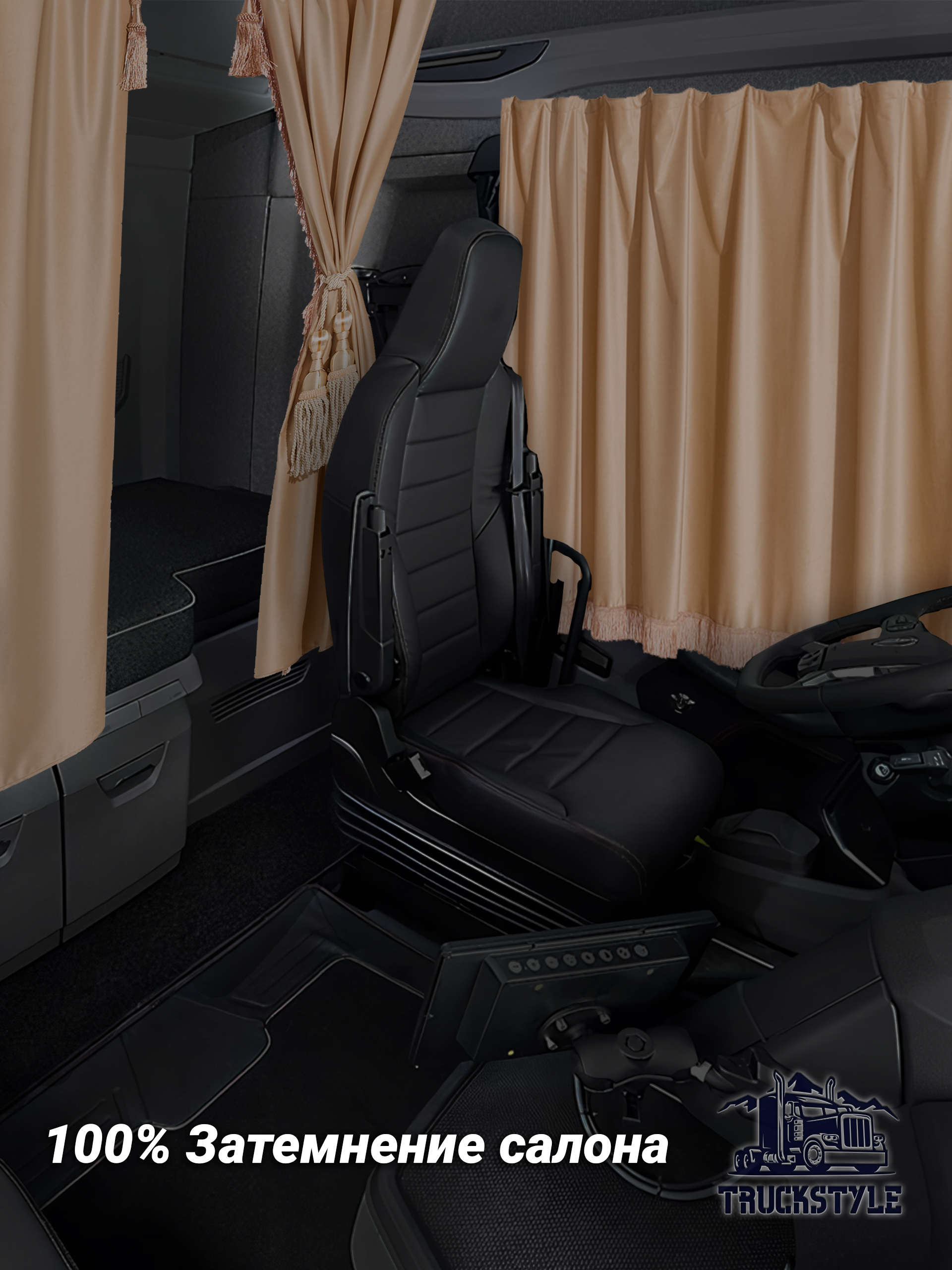 Представляем шторы в салон грузового авто с бахромой и кистями, специально разработанные для автокабин Volvo, Scania, MAN, DAF, Merc, Камаз, Sitrak, Shacman и Foton. Эти автоаксессуары прекрасно подойдут для создания уюта и комфортной атмосферы в вашем грузовом автомобиле. Высота одной стороны лобовых штор составляет 0,75 метра, а ширина одной стороны – 2,30 метра, высота одной стороны спальных штор составляет 1,45 метра, а ширина одной стороны 1,15 метра, что позволяет идеально адаптироваться к интерьеру вашей кабины.