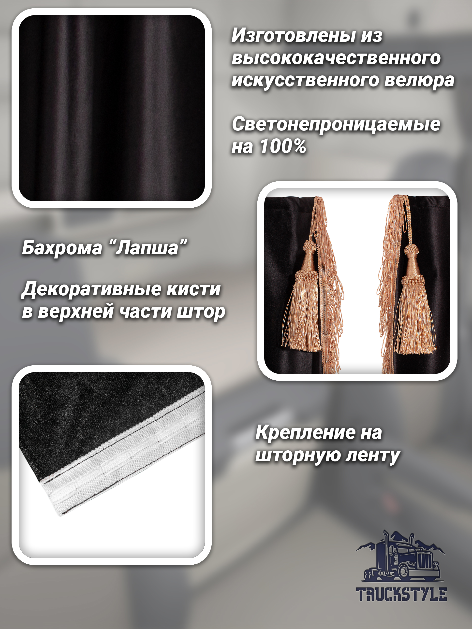 Представляем шторы в салон грузового авто с бахромой и кистями, специально разработанные для автокабин Volvo, Scania, MAN, DAF, Merc, Камаз, Sitrak, Shacman и Foton. Эти автоаксессуары прекрасно подойдут для создания уюта и комфортной атмосферы в вашем грузовом автомобиле. Высота одной стороны лобовых штор составляет 0,9 метра, а ширина одной стороны – 2,30 метра, высота одной стороны спальных штор составляет 1,45 метра, а ширина одной стороны 1,15 метра, что позволяет идеально адаптироваться к интерьеру вашей кабины.