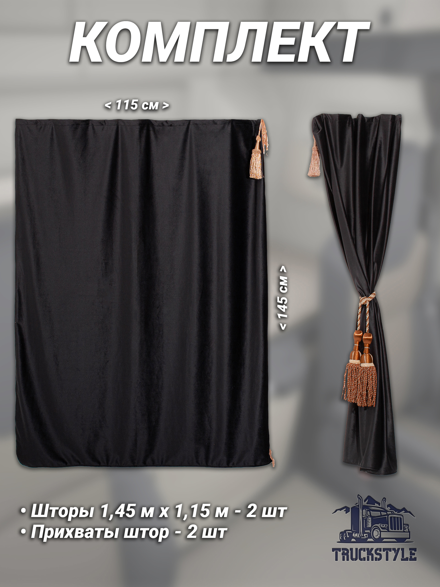 В комплект входят: 2 шторы 1,45х1,15м каждая, прихваты-кисти - 2шт.