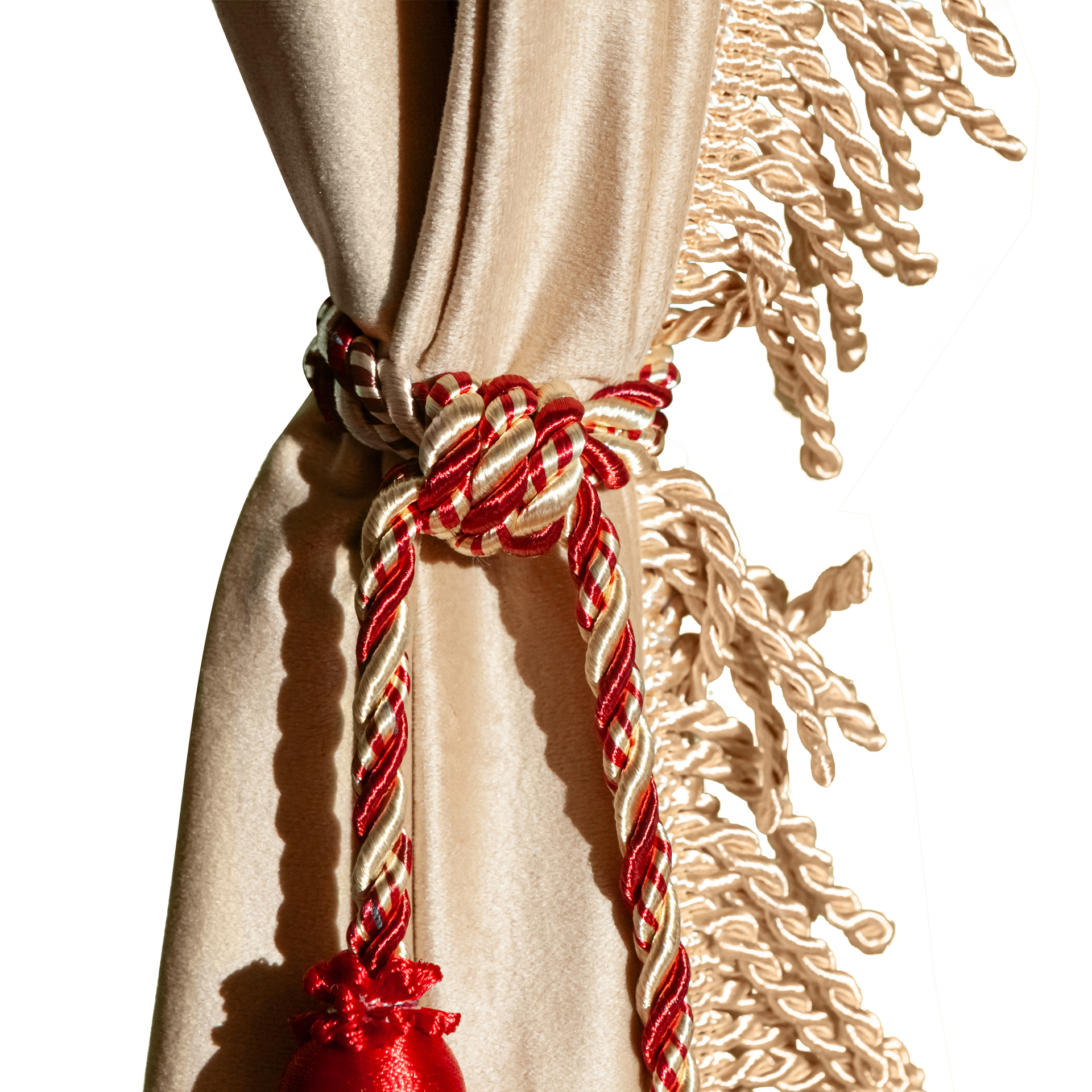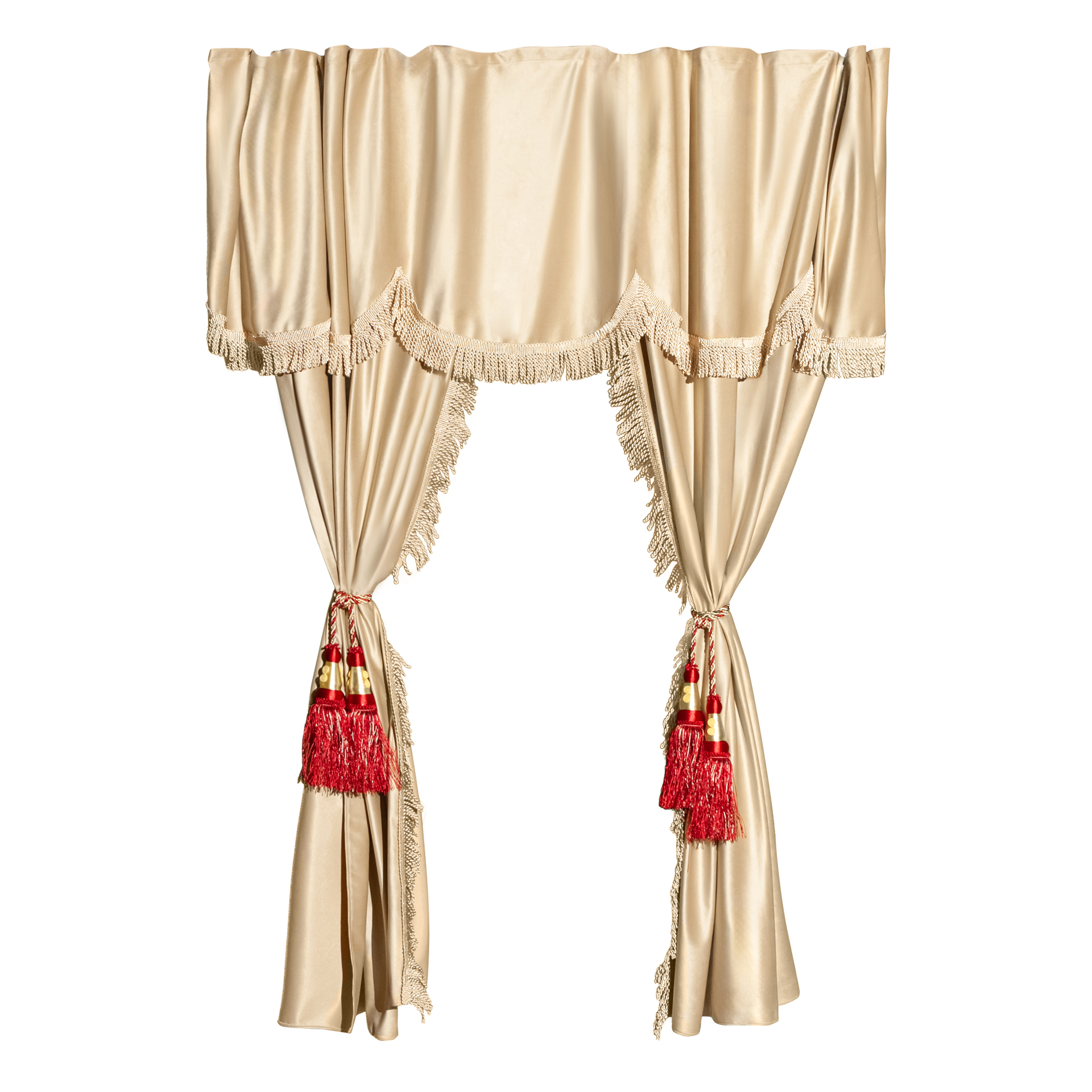Изготовлены из качественного двойного велюра, шторы обладают свойствами блэкаут, что обеспечивает надежную защиту от солнечных лучей и лишних взглядов. Бежевый цвет с роскошной золотой бахромой придаёт вашим шторкам стильный и элегантный вид, отлично сочетаясь с любым интерьером.