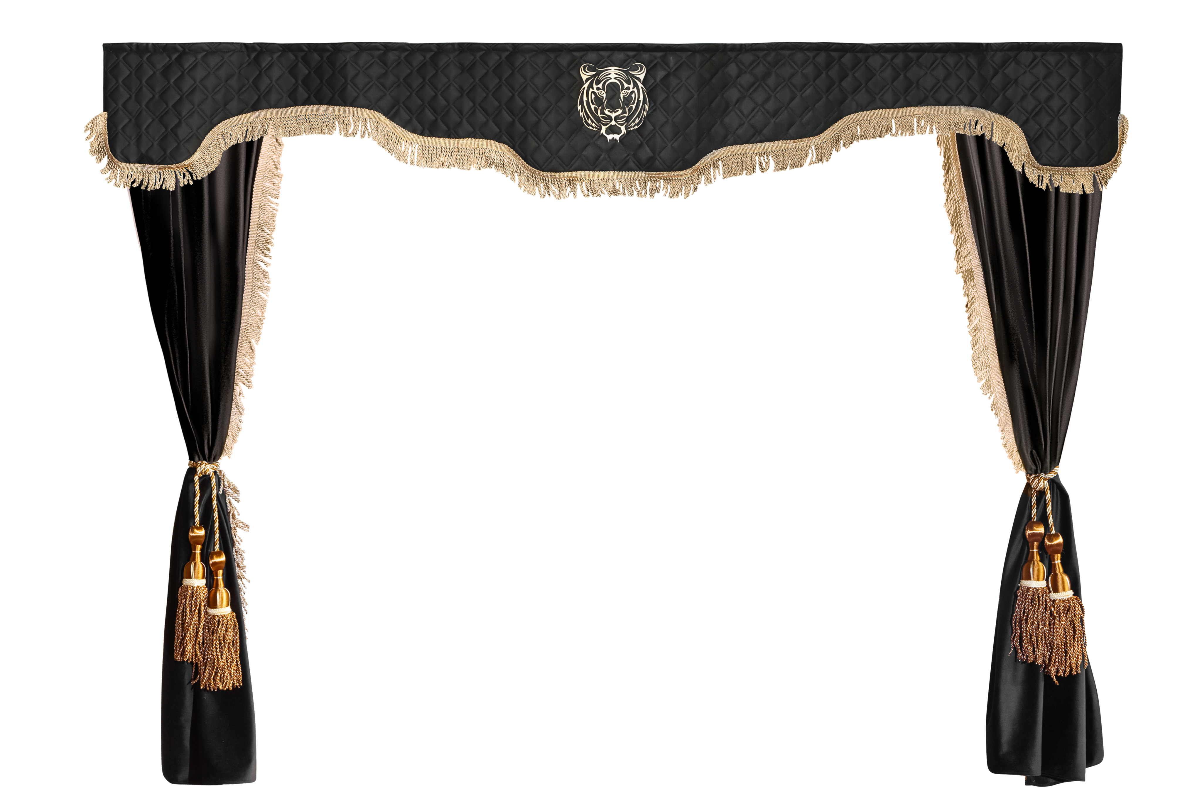 Изготовлены из качественного двойного велюра, шторы обладают свойствами блэкаут, что обеспечивает надежную защиту от солнечных лучей и лишних взглядов. Черный цвет с роскошной бежевой бахромой придаёт вашим шторкам стильный и элегантный вид, отлично сочетаясь с любым интерьером.