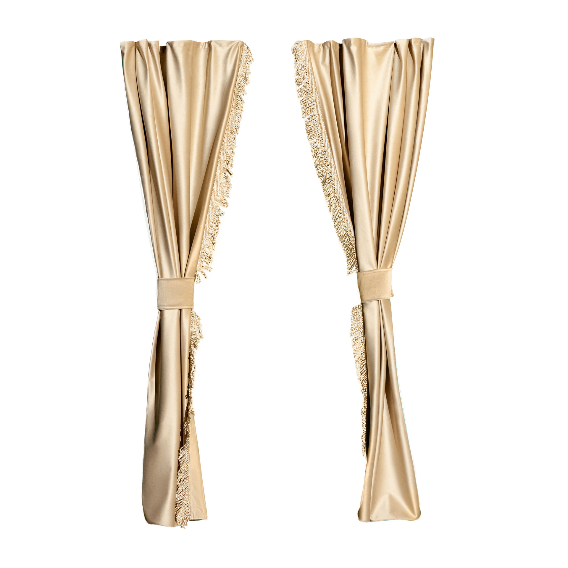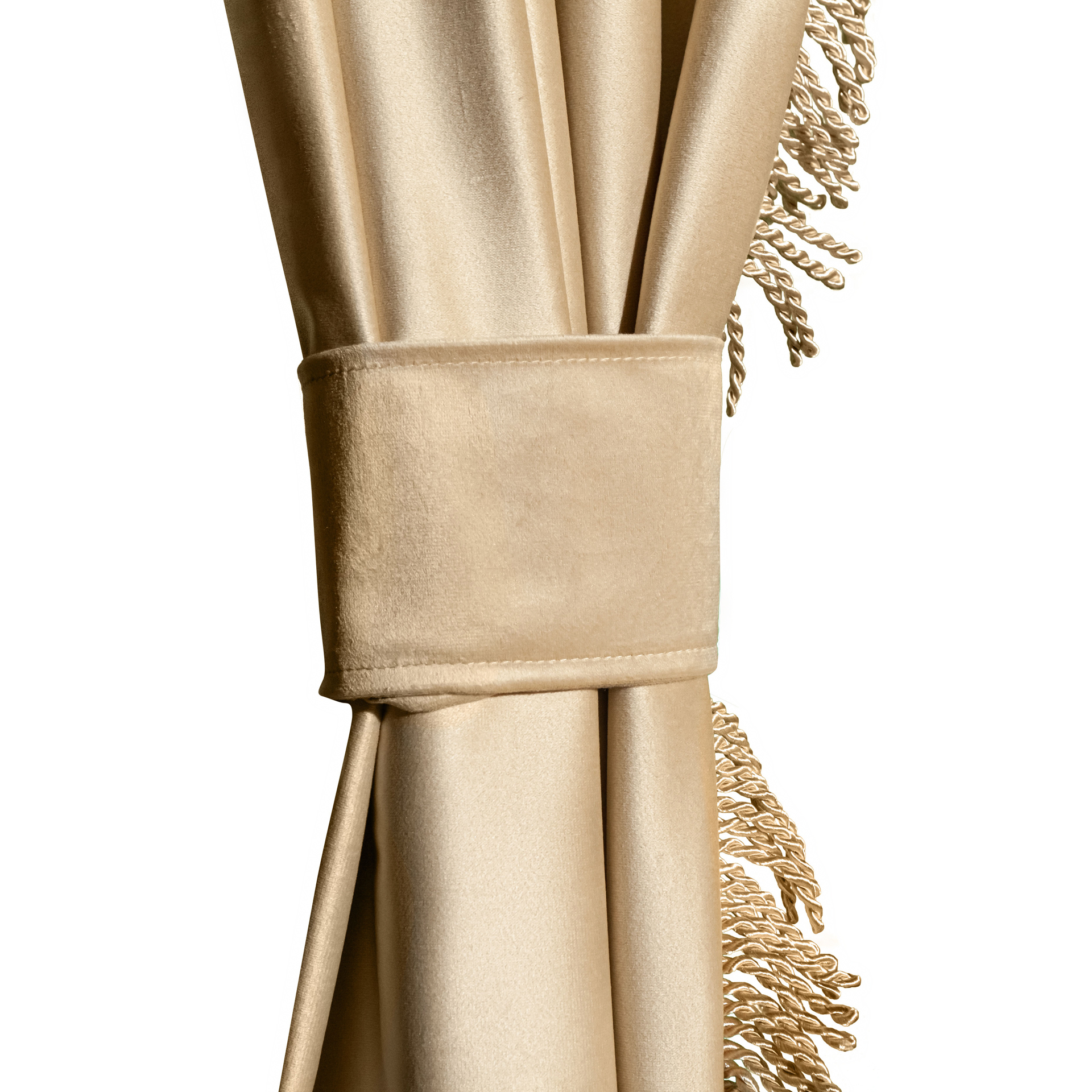 Изготовлены из качественного двойного велюра, шторы обладают свойствами блэкаут, что обеспечивает надежную защиту от солнечных лучей и лишних взглядов. Бежевый цвет с роскошной золотой бахромой придаёт вашим шторкам стильный и элегантный вид, отлично сочетаясь с любым интерьером.